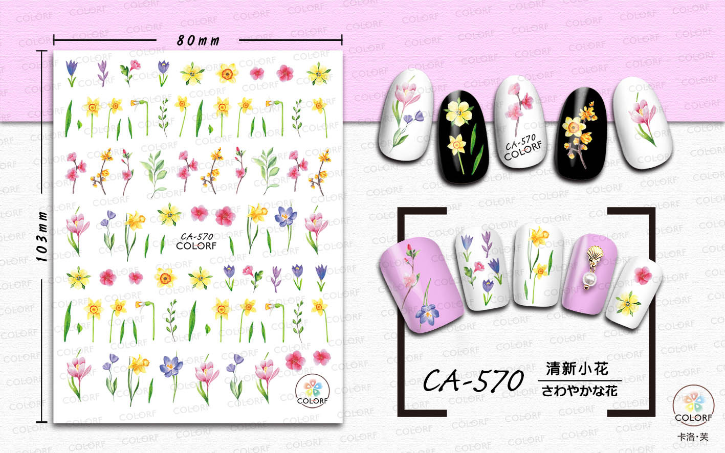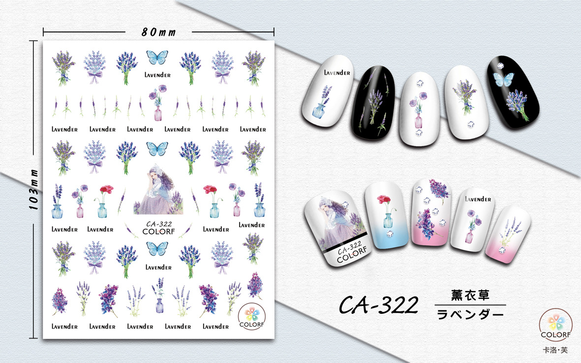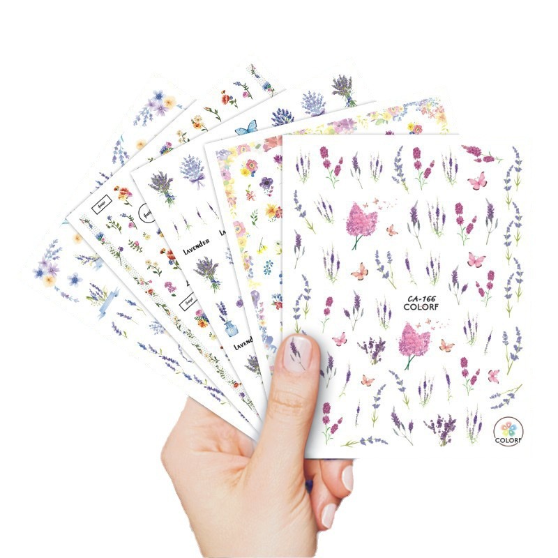 Трансграничная внешняя торговля взрывы CA маникюрная наклейка масляная живопись мультяшный цветок акварель цветок имитация лаванды ногти наклейки оптом