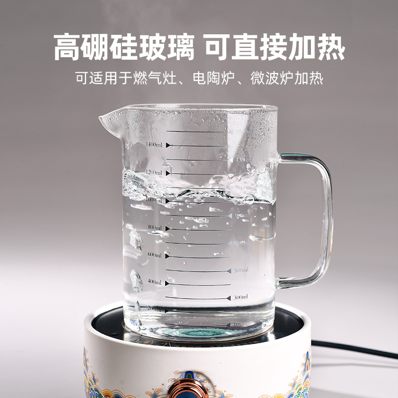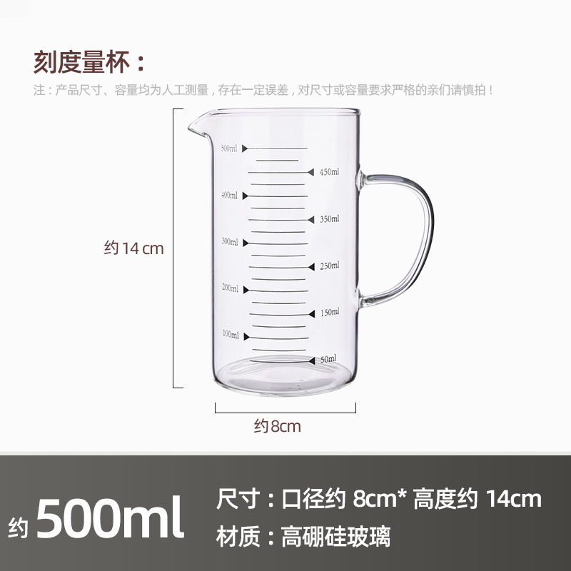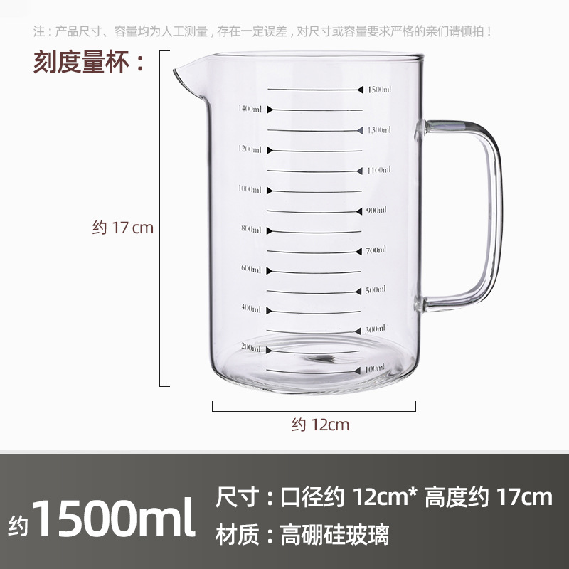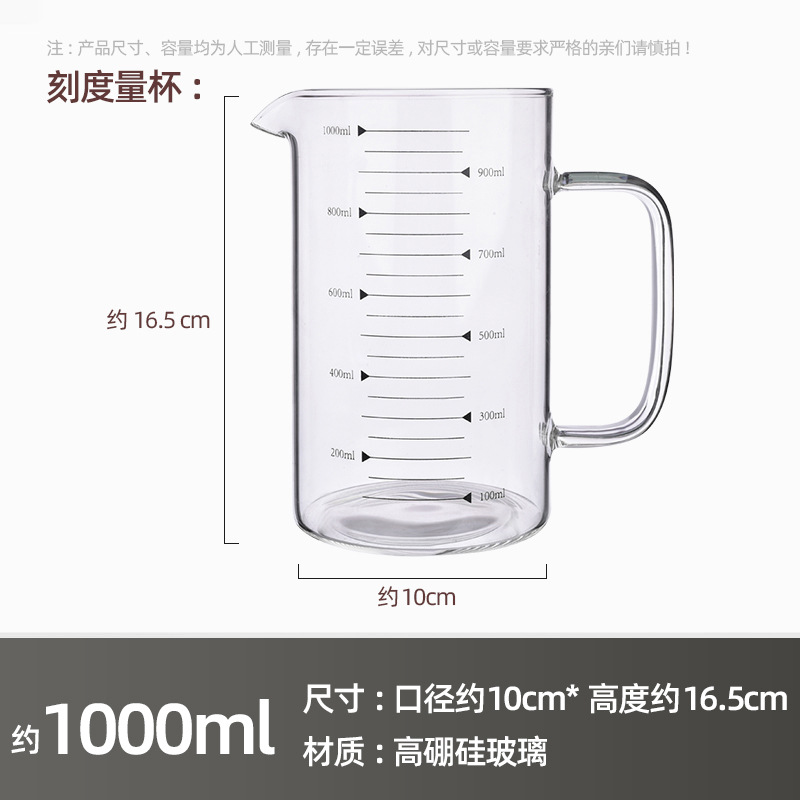 Главная страница > Мерный стакан из высококачественного боросиликатного стекла, утолщенная ручка, прозрачный стакан с градуировкой, подходит для микроволновой печи, простой стакан для молока большой емкости.