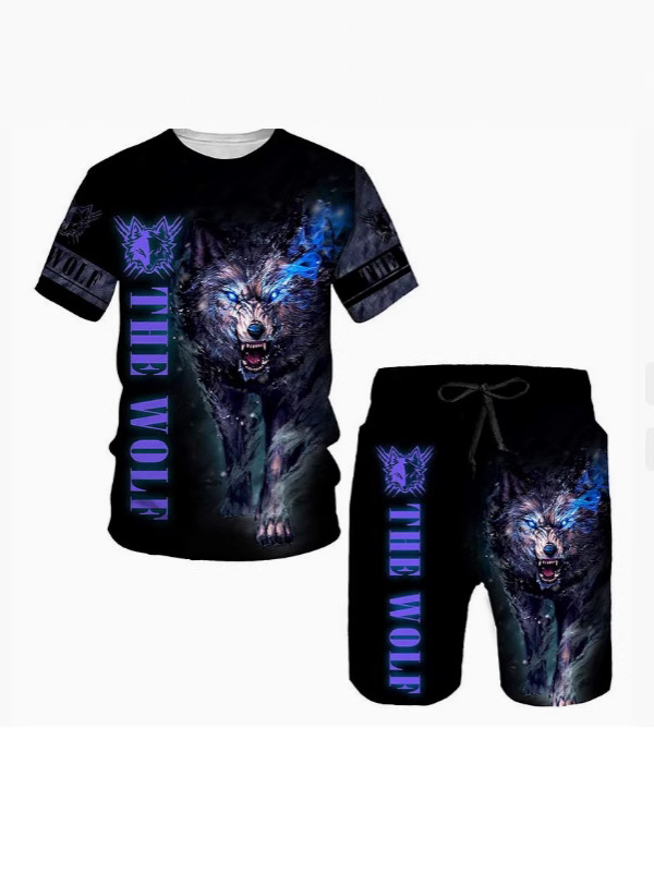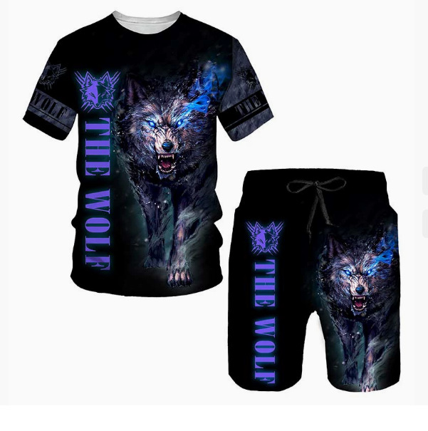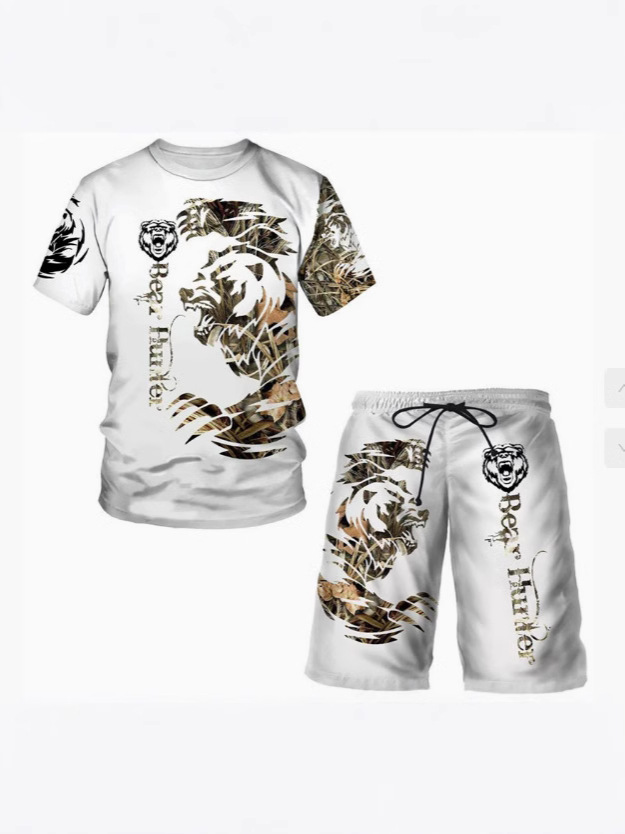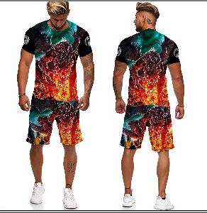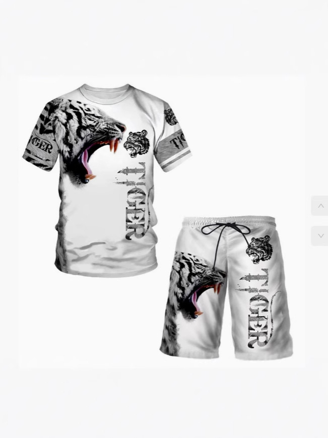 Главная страница > Мужской костюм футболка горячая распродажа кросс-бордер 3D цифровая печать лев и тигр узор мужской повседневный спортивный костюм