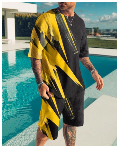 Мужской костюм футболка горячая распродажа кросс-бордер 3D цифровая печать лев и тигр узор мужской повседневный спортивный костюм
