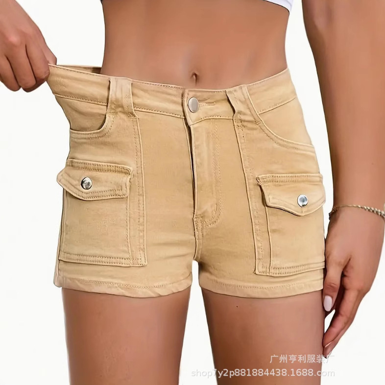 2025 Европейские и американские кросс-граничные TEMU Xiyin Amazon летние новые джинсовые эластичные женские шорты с множеством карманов
