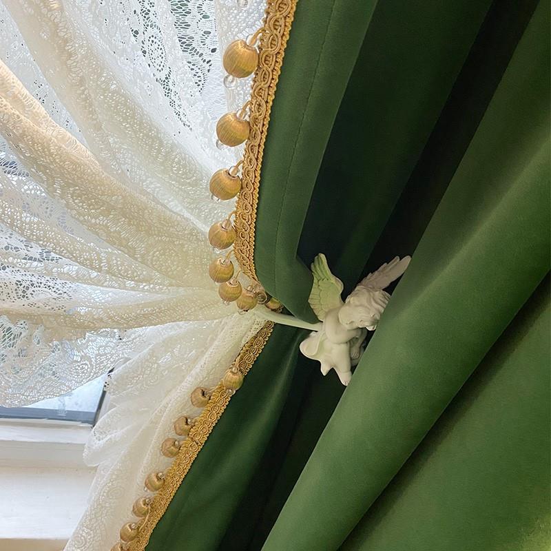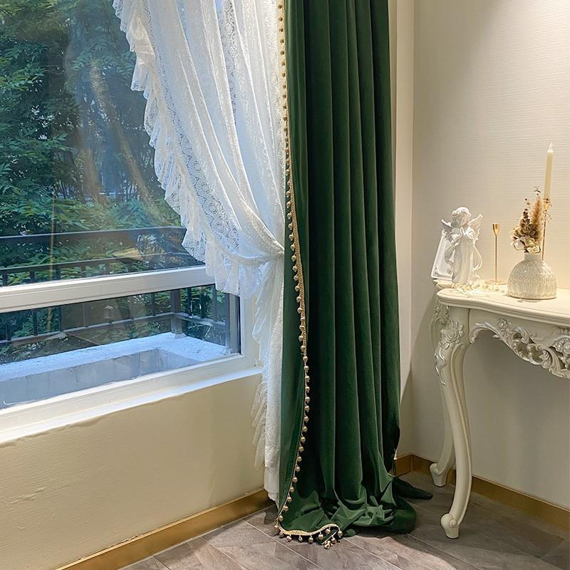Главная страница > Ретро доступные роскошные темно-зеленые бархатные однотонные плотные шторы для гостиной, спальни, солнцезащитный козырек, ретро американский французский эркер