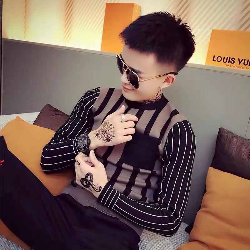 Главная страница > Осенне-зимний мужской трикотаж, свитер, модная красивая социальная рубашка с рюшами, красивая Базовая рубашка с круглым вырезом, Мужская шерстяная внутренняя одежда для студентов