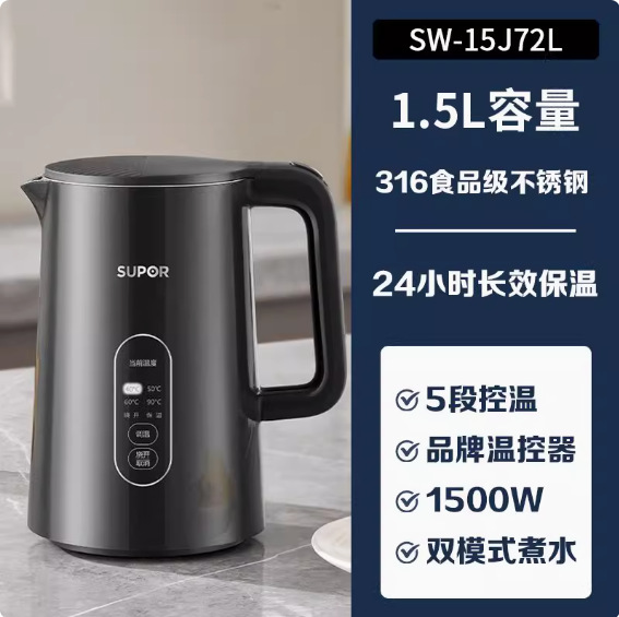 Главная страница > SUPOR/Supor электрический чайник 1,5 л бытовой из нержавеющей стали 316 с теплоизоляцией встроенный чайник SW-15J72L