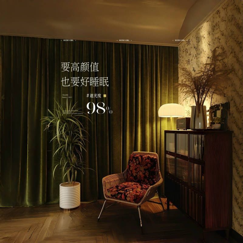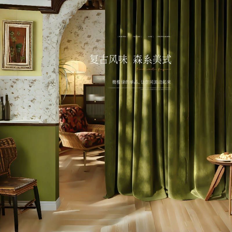 Главная страница > Американские ретро-шторы в стиле лёгкой роскоши, светонепроницаемые, модель 2025 года, для спальни, полная светонепроницаемость, кремовый вельвет, шенилл, зелёный.