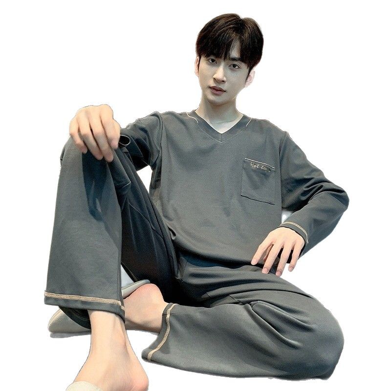 Главная страница > Мужской костюм-пижама на весну и осень 2025 года, длинные рукава и брюки, хлопковый, свободный крой, повседневный, молодежный домашний костюм на осень и зиму