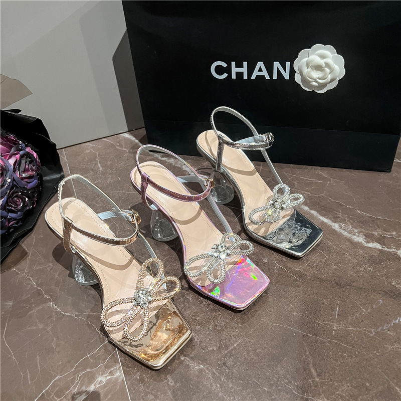 Главная страница > Новые летние женские туфли 2025 года: босоножки на высоком каблуке с кристаллами, квадратным носком, бантом и ремешком на щиколотке
