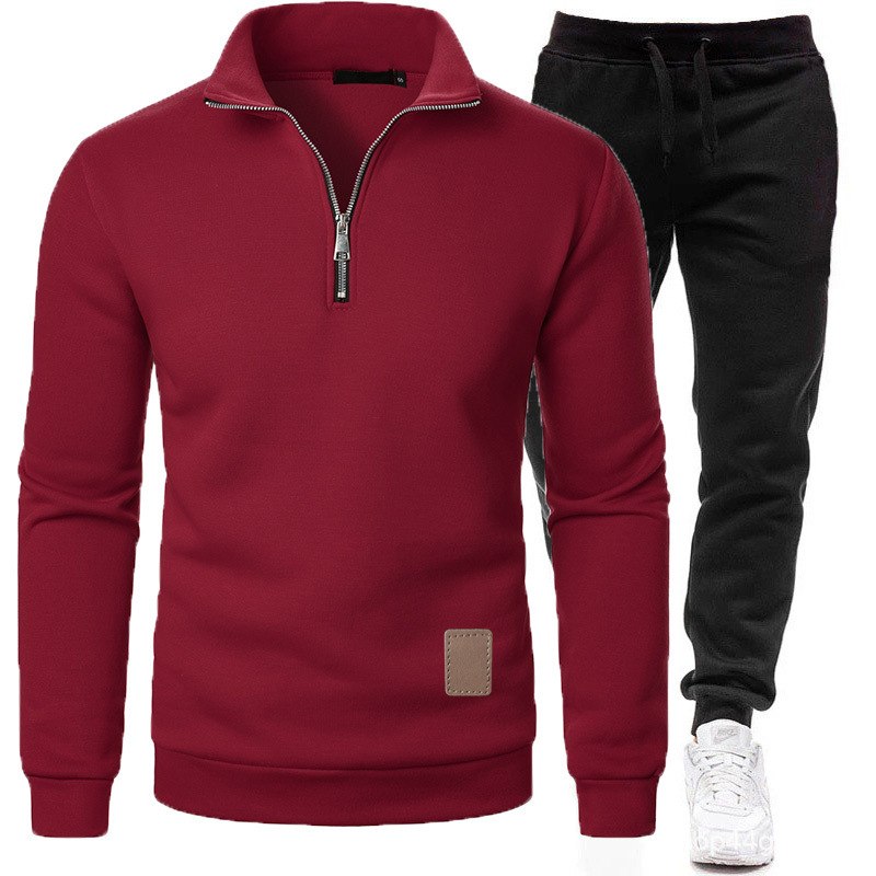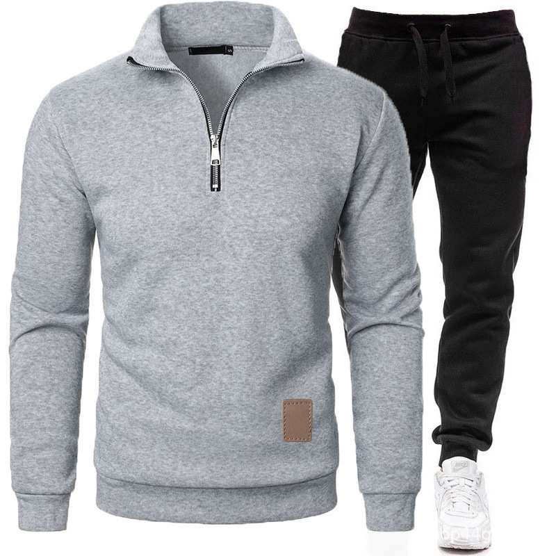 Главная страница > Трансграничная мужская одежда воротник с полными застежками-молниями с длинными рукавами спортивный досуг сплошной цвет пара шерстяной набор может быть напечатан с логотипом
