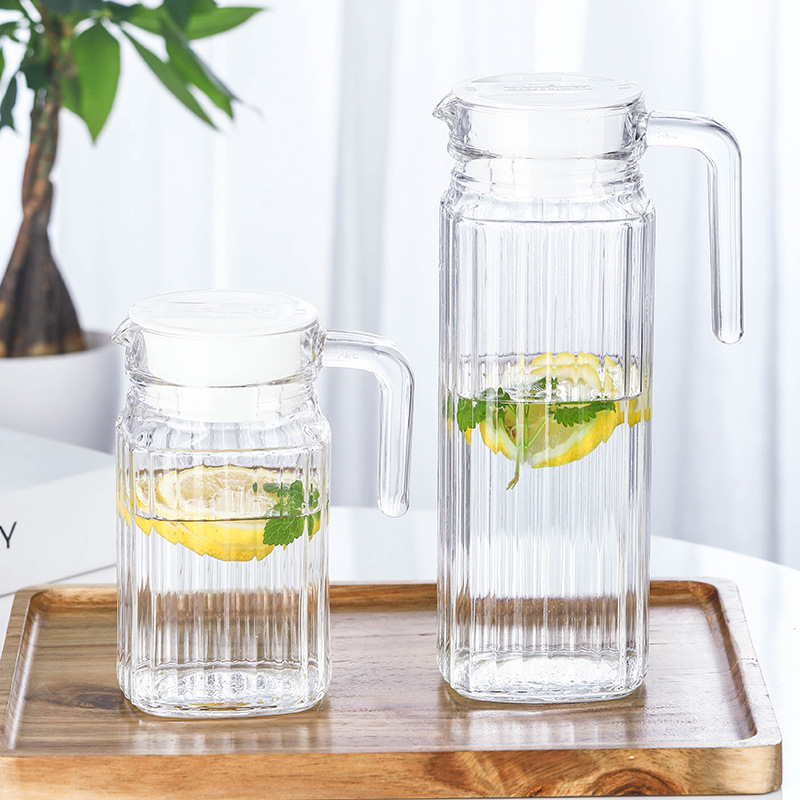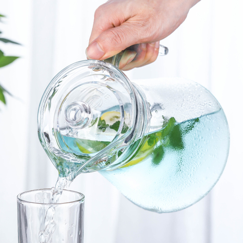 Главная страница > Стеклянный кувшин для воды большой емкости с крышкой для использования в отелях и дома, подходит для напитков, соков и напитков, не содержит свинца, идеально подходит для подарков или в качестве цветочного чайника.
