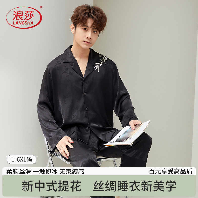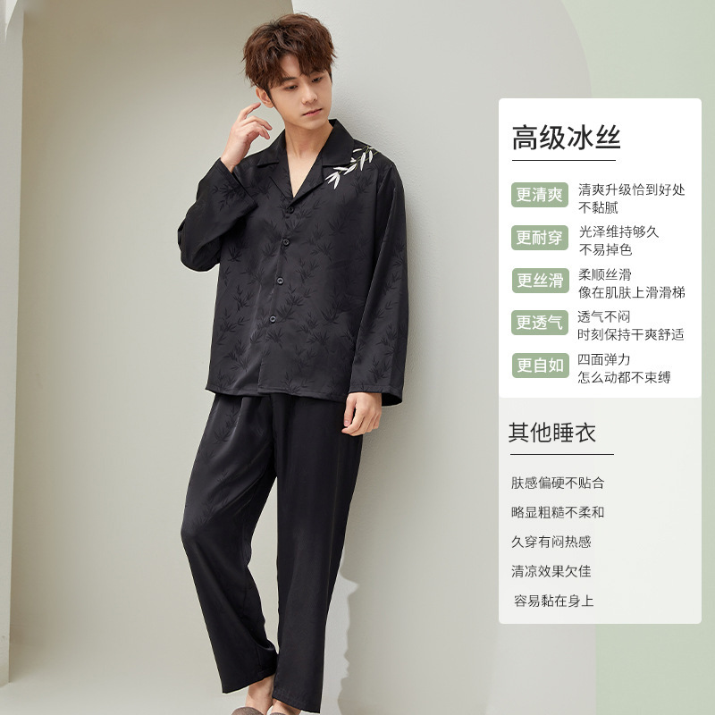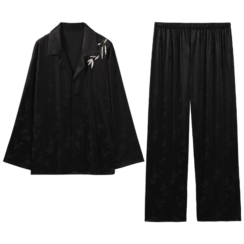 Главная страница > Мужской пижамный комплект из тонкого вышитого ледяного шелка с длинными рукавами, новый домашний костюм из ледяного шелка в китайском стиле для мужчин, подарок для парня или мужа.