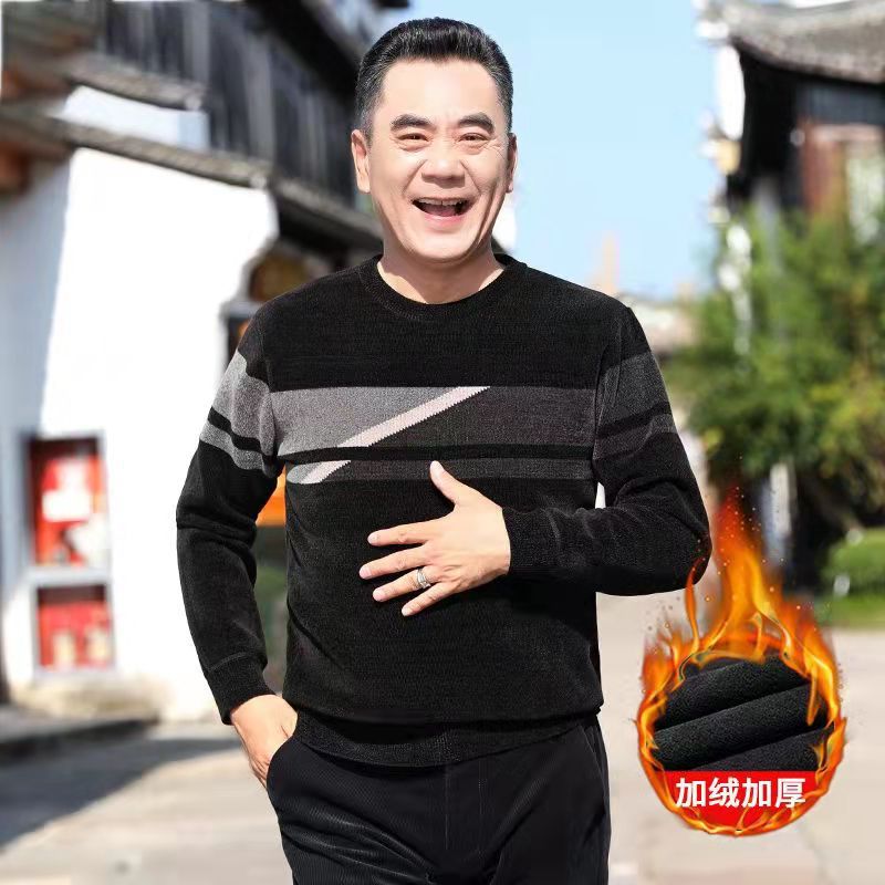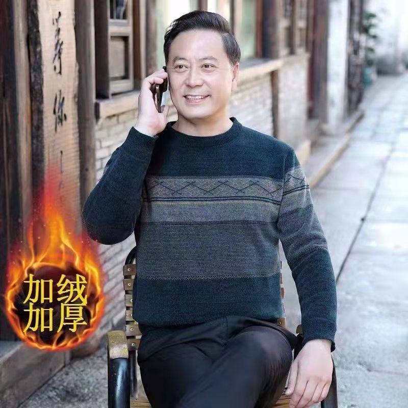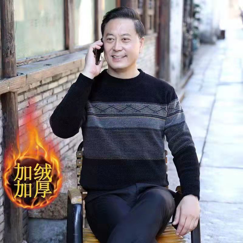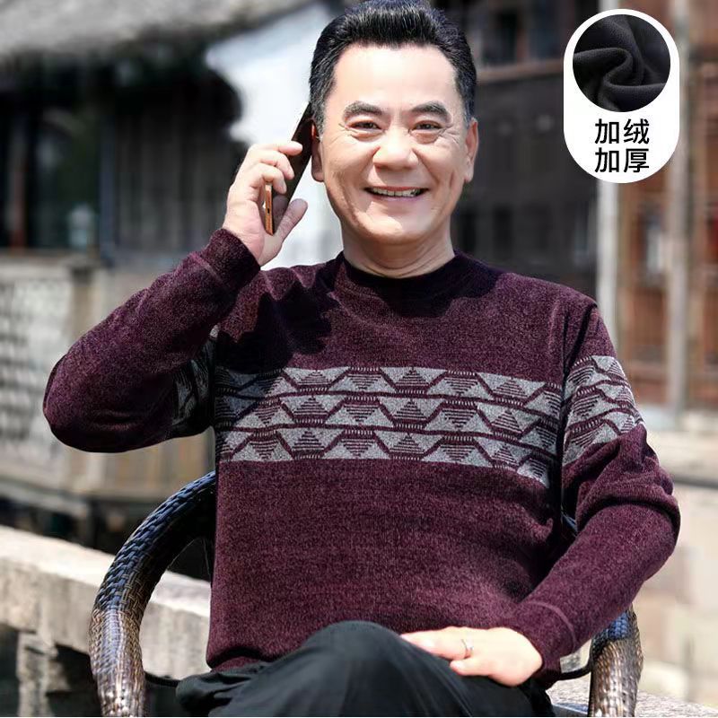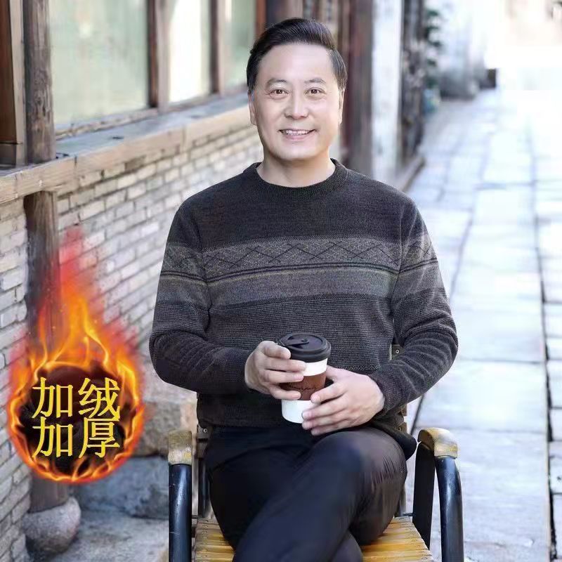 Главная страница > Зимние мужчины среднего и пожилого возраста с длинными рукавами и круглым вырезом шерстяной свитер шерстяной толстый теплый топ папа свитер мужской