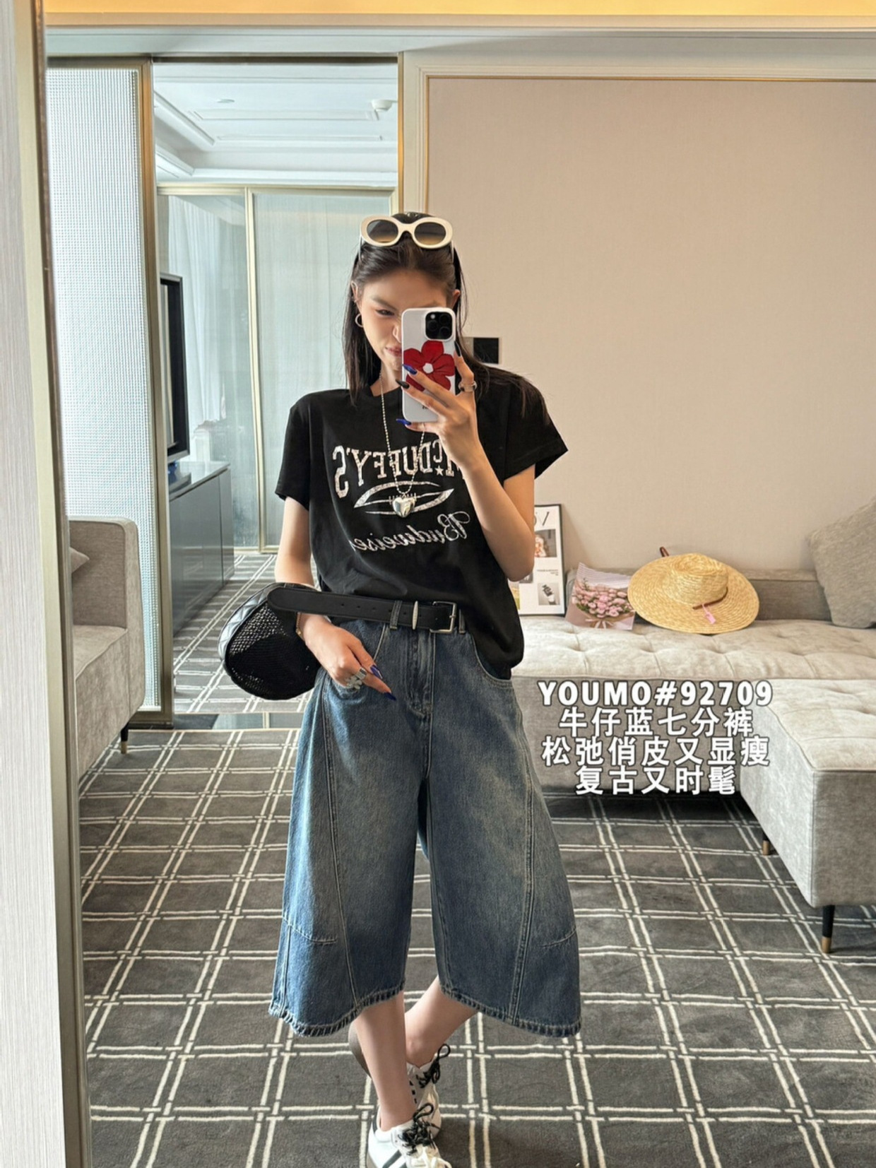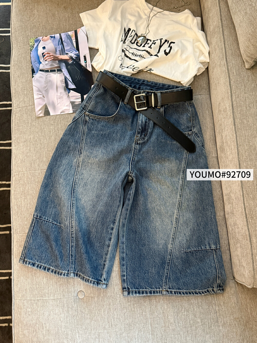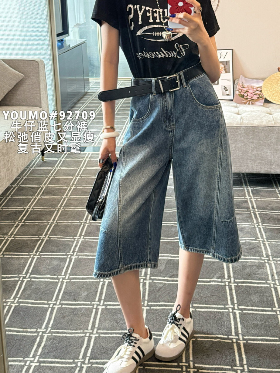 Главная страница > YOUMO Yomo 92709 лето 2025 новая индивидуальная тенденция джинсы женские высокие талии семь точек широкие брюки шорты