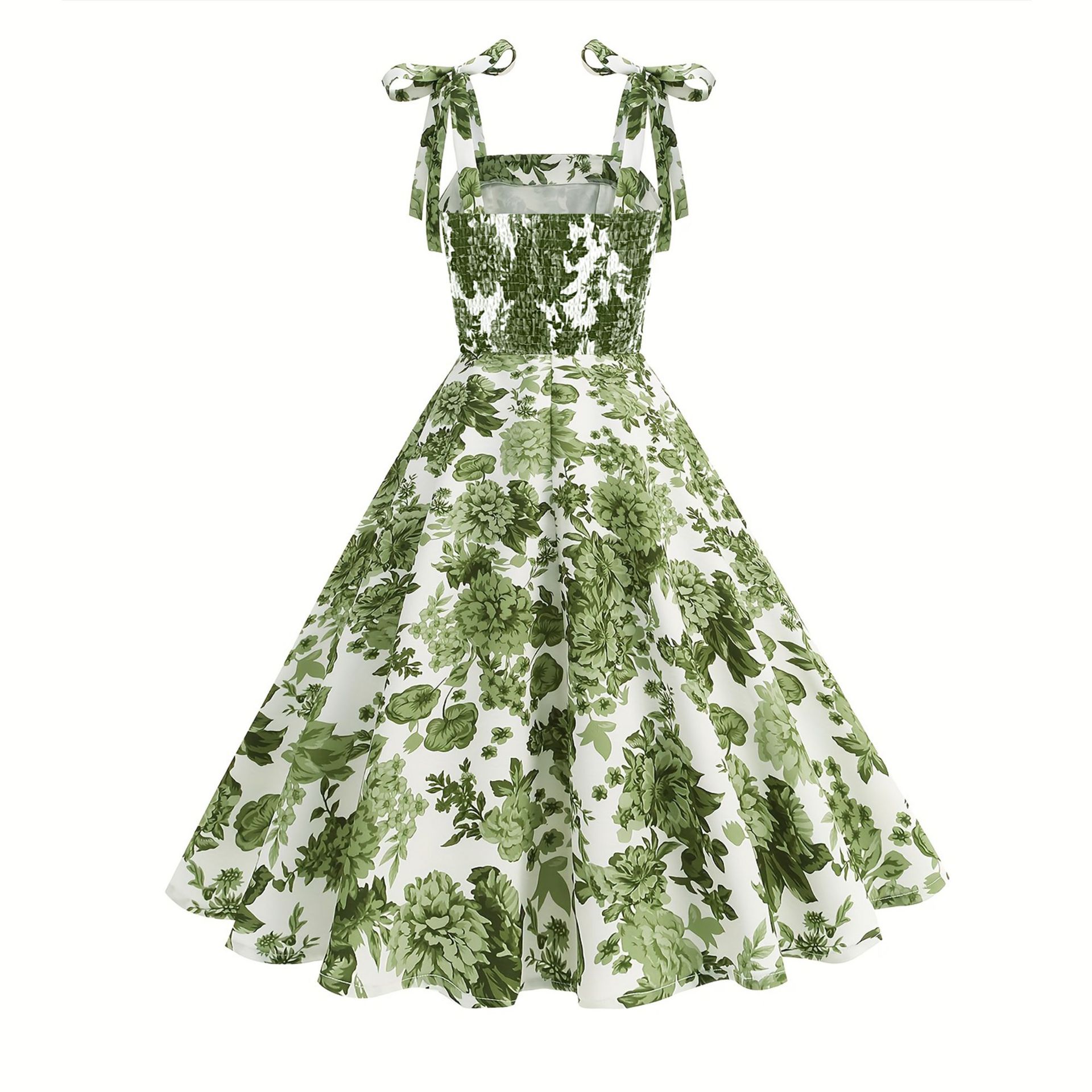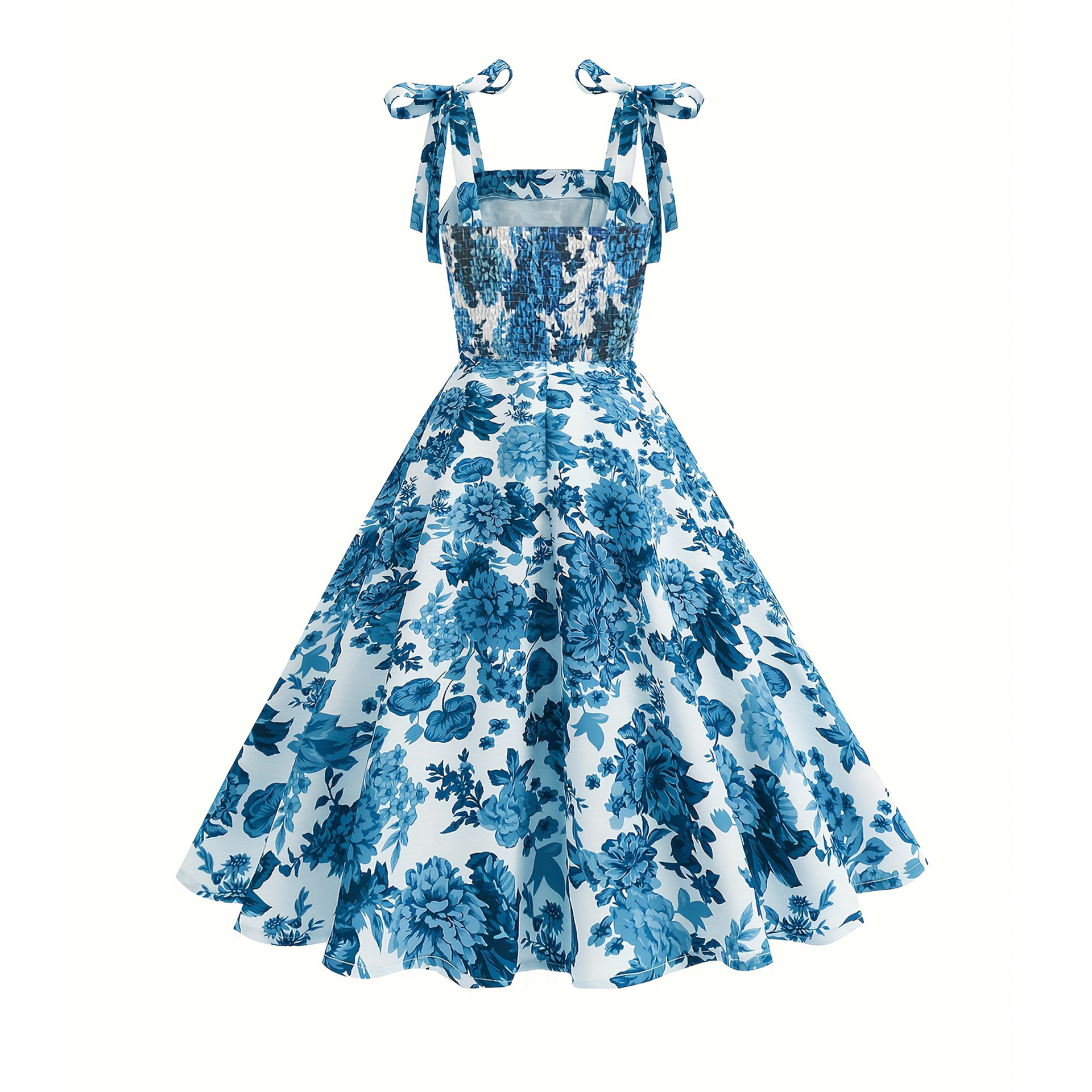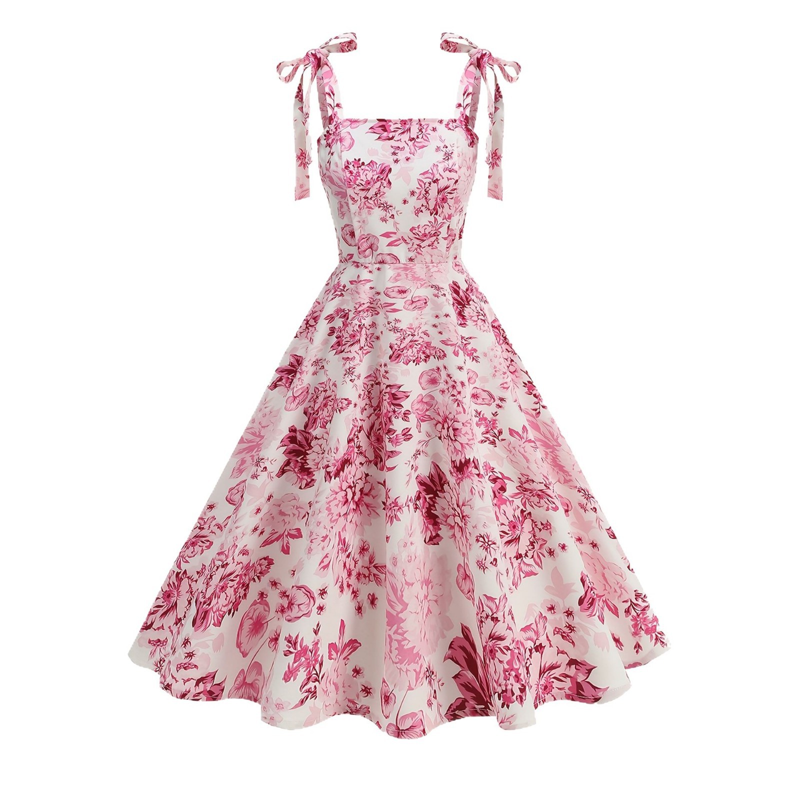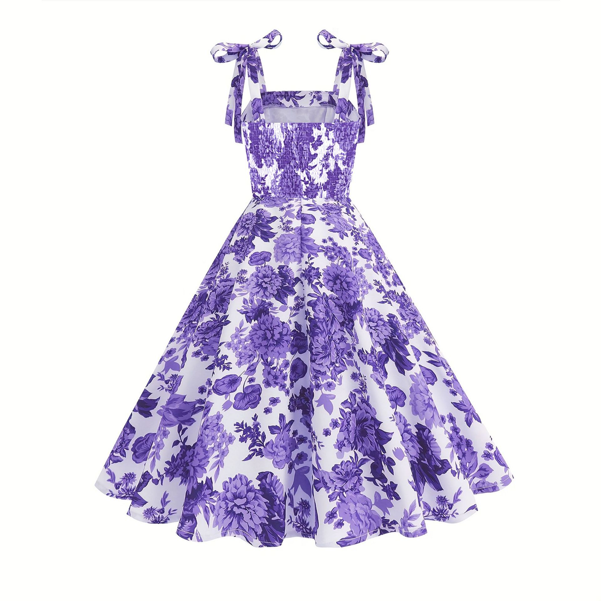 Главная страница > Женское трансграничное элегантное платье с цветочным принтом и завышенной талией в европейском и американском стиле с завязками на подтяжках, оптимизизированная версия