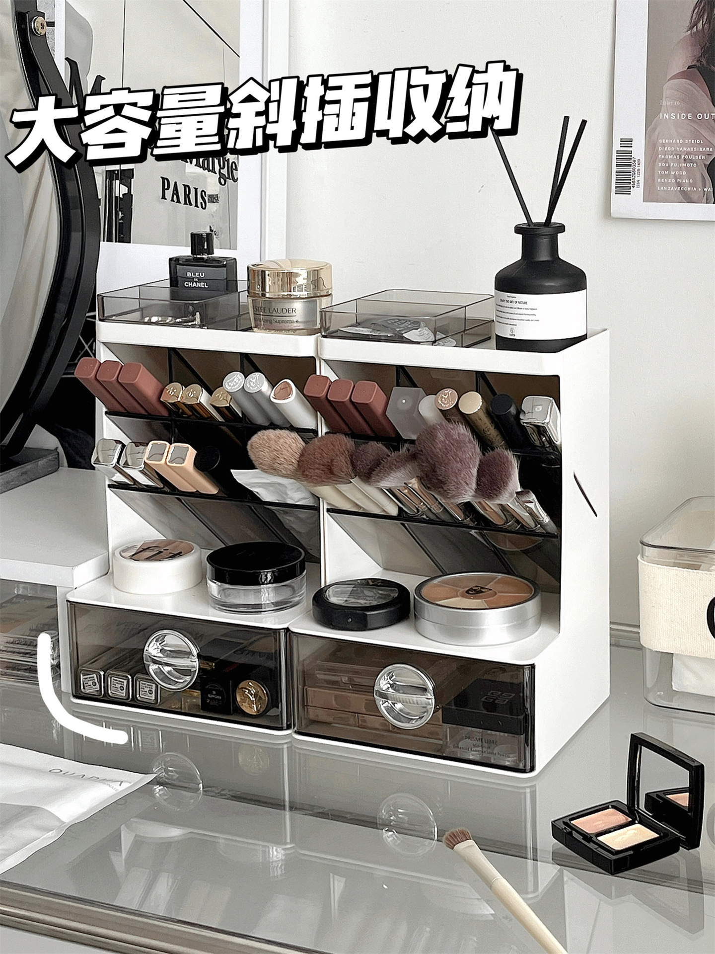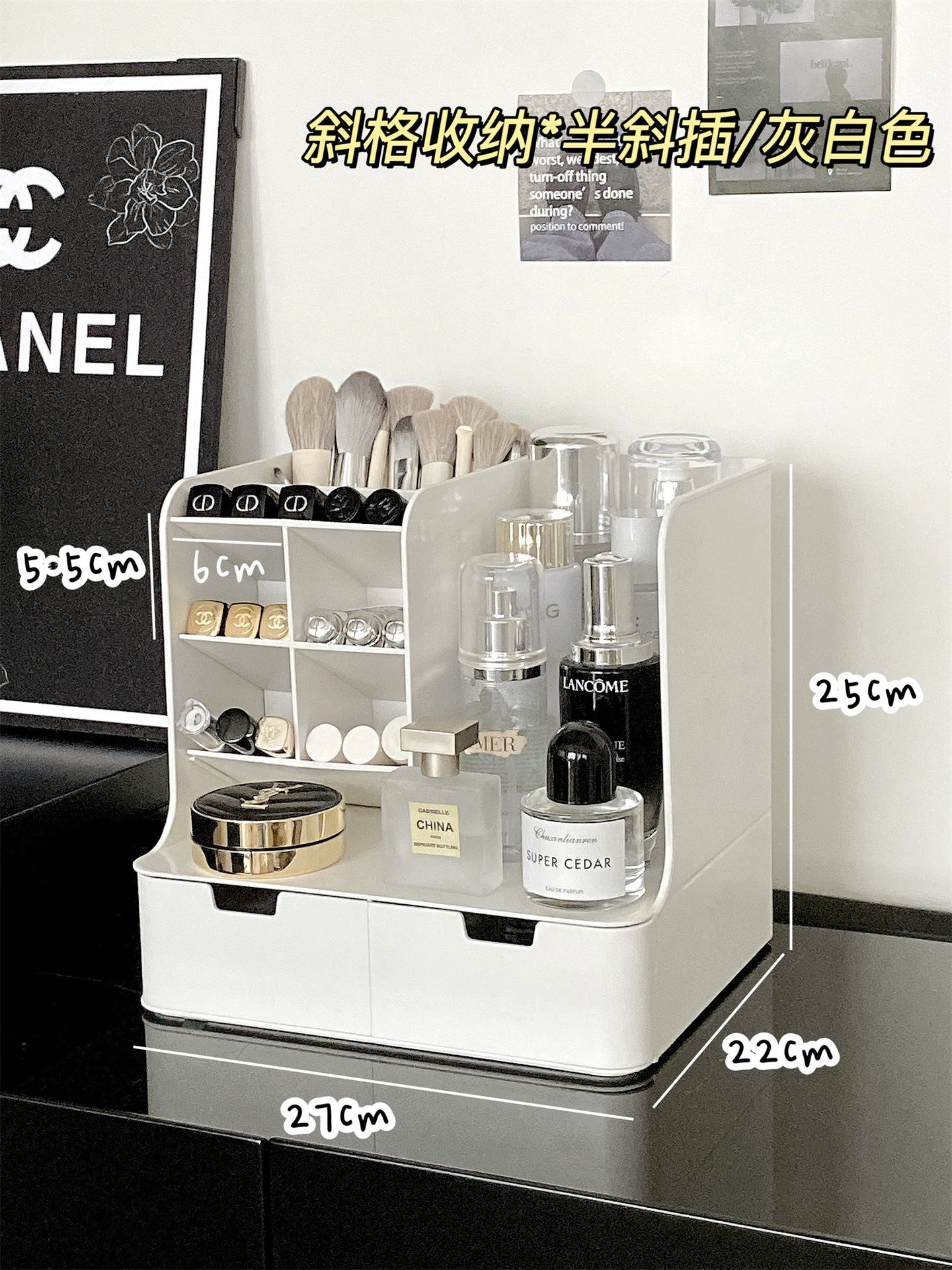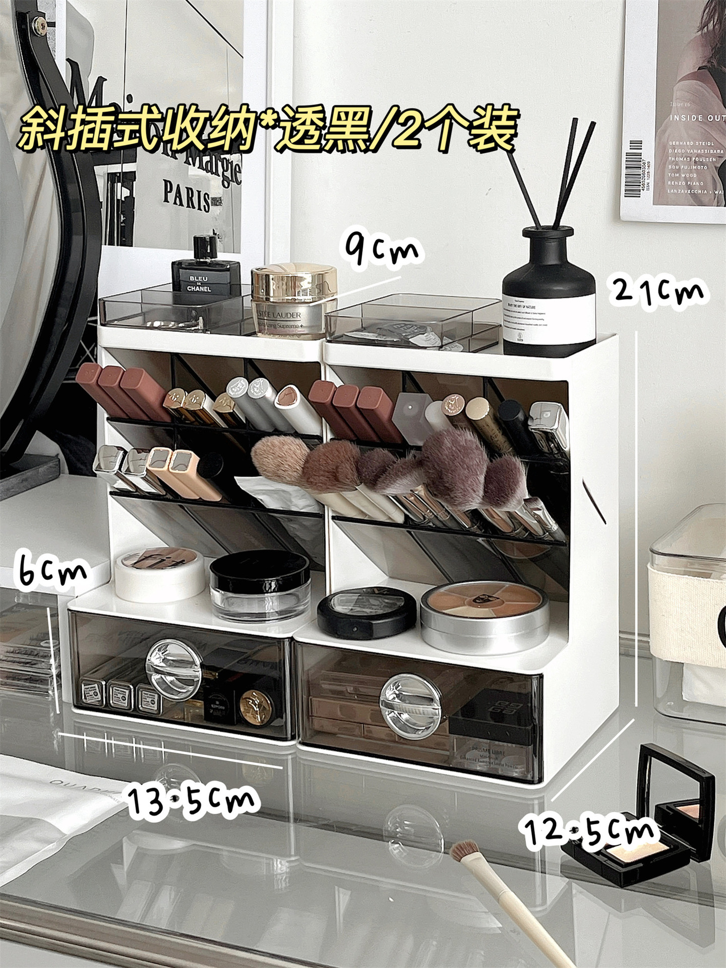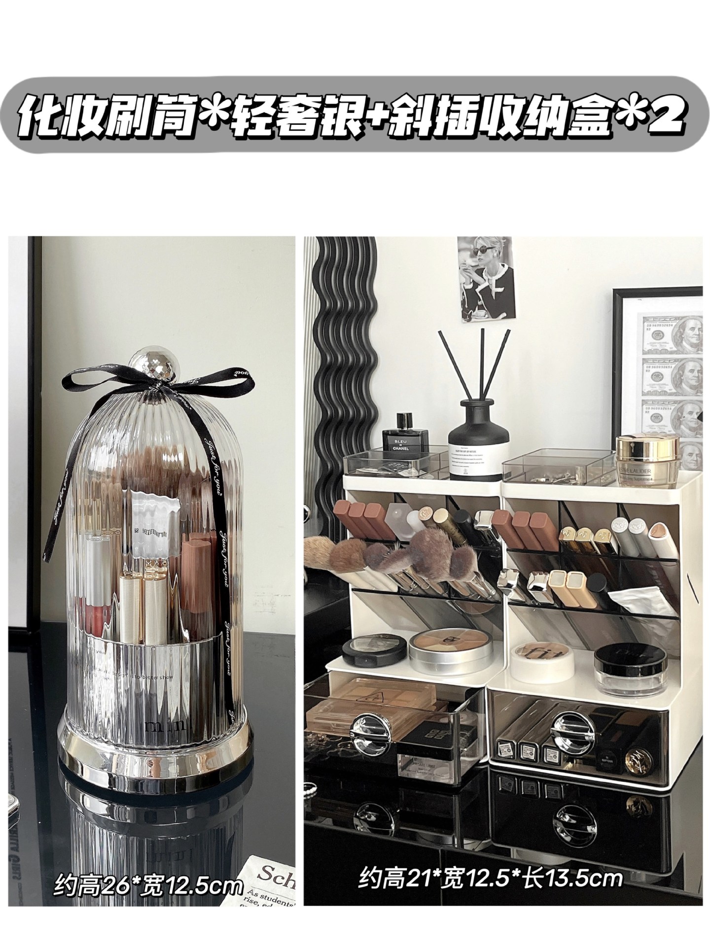 Держатель кистей для макияжа*Легкий роскошный серебристый+Наклонный ящик для хранения*2