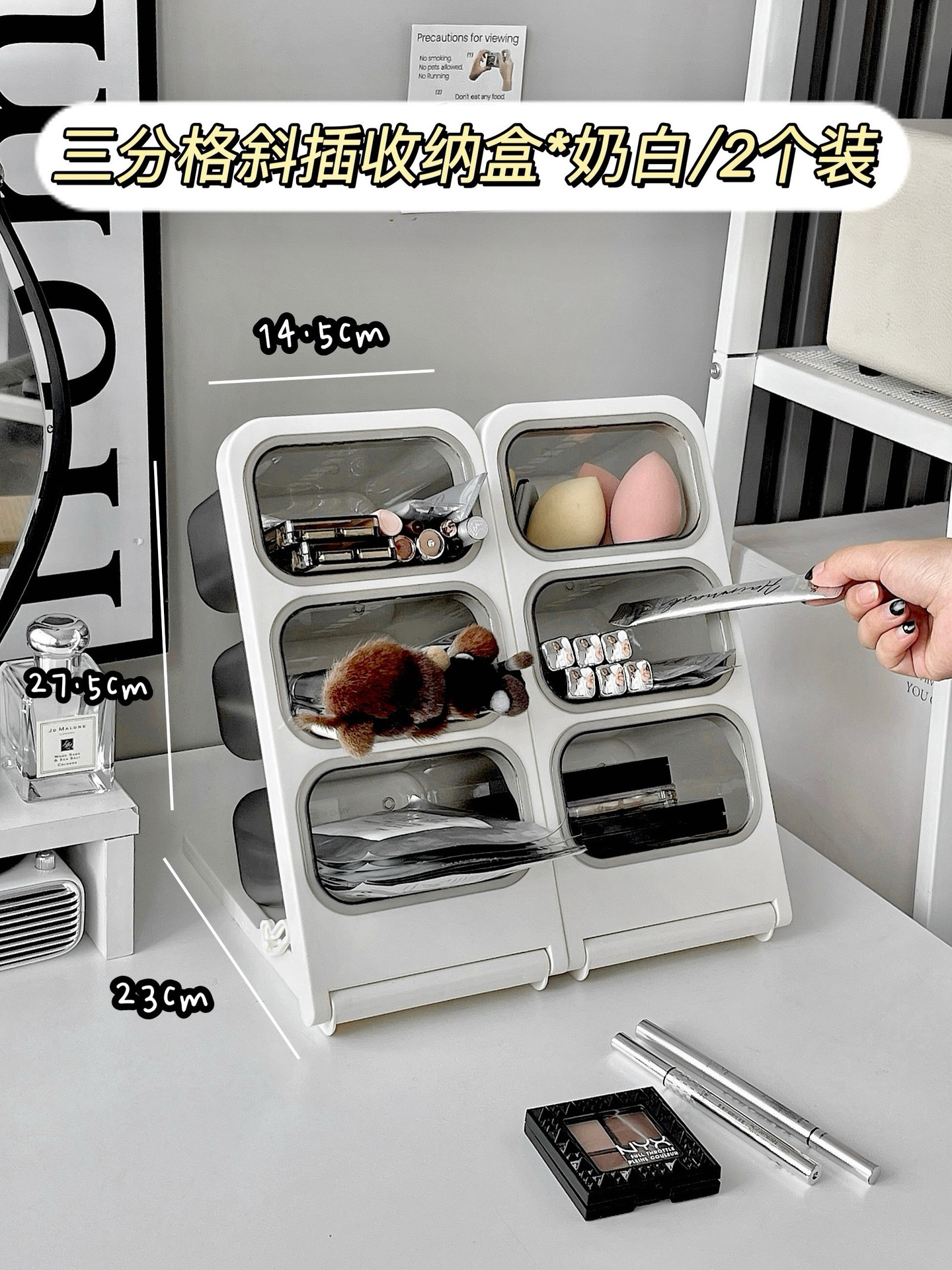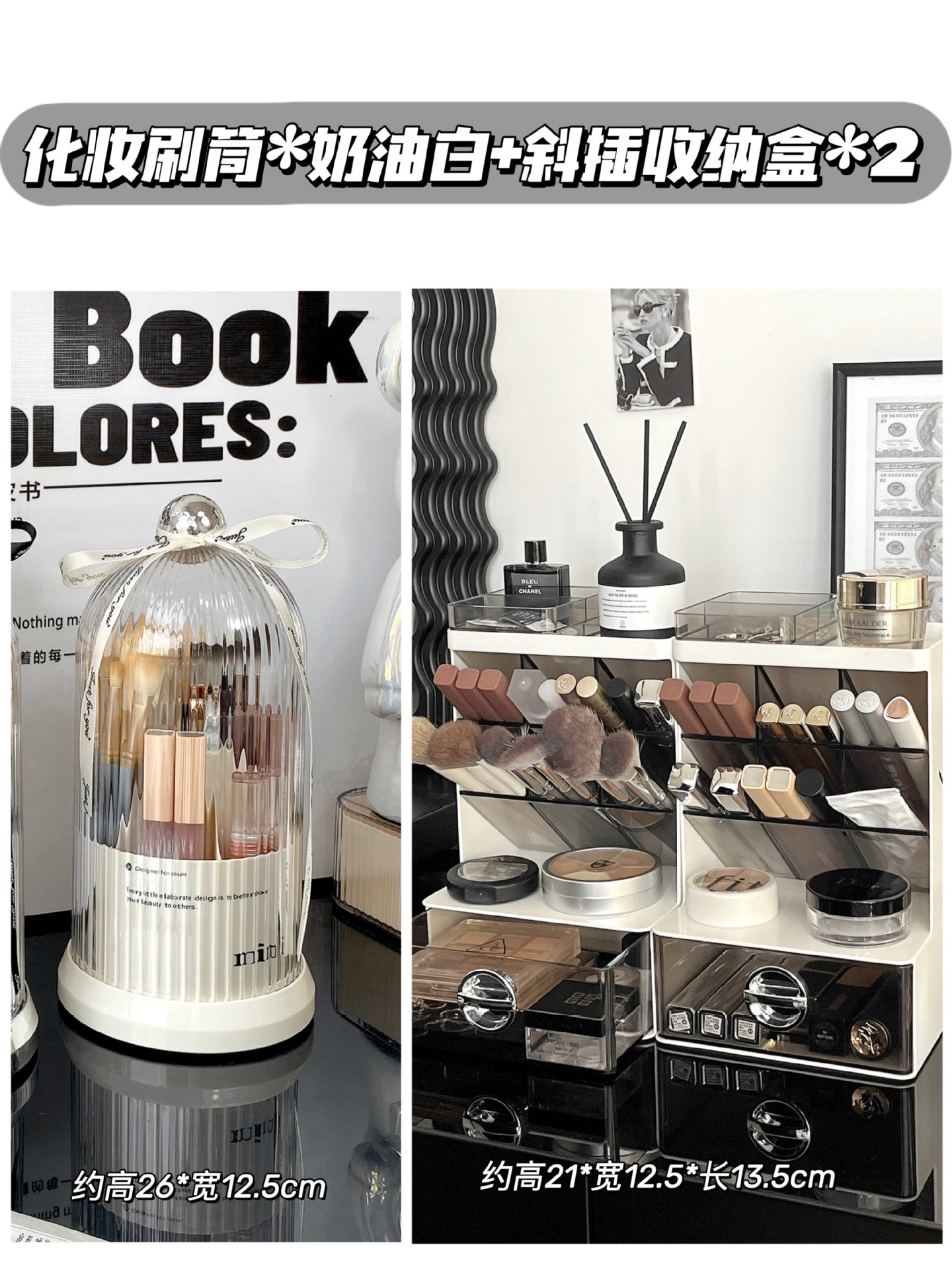 Держатель кистей для макияжа*молочно-белый+наклонный ящик для хранения*2