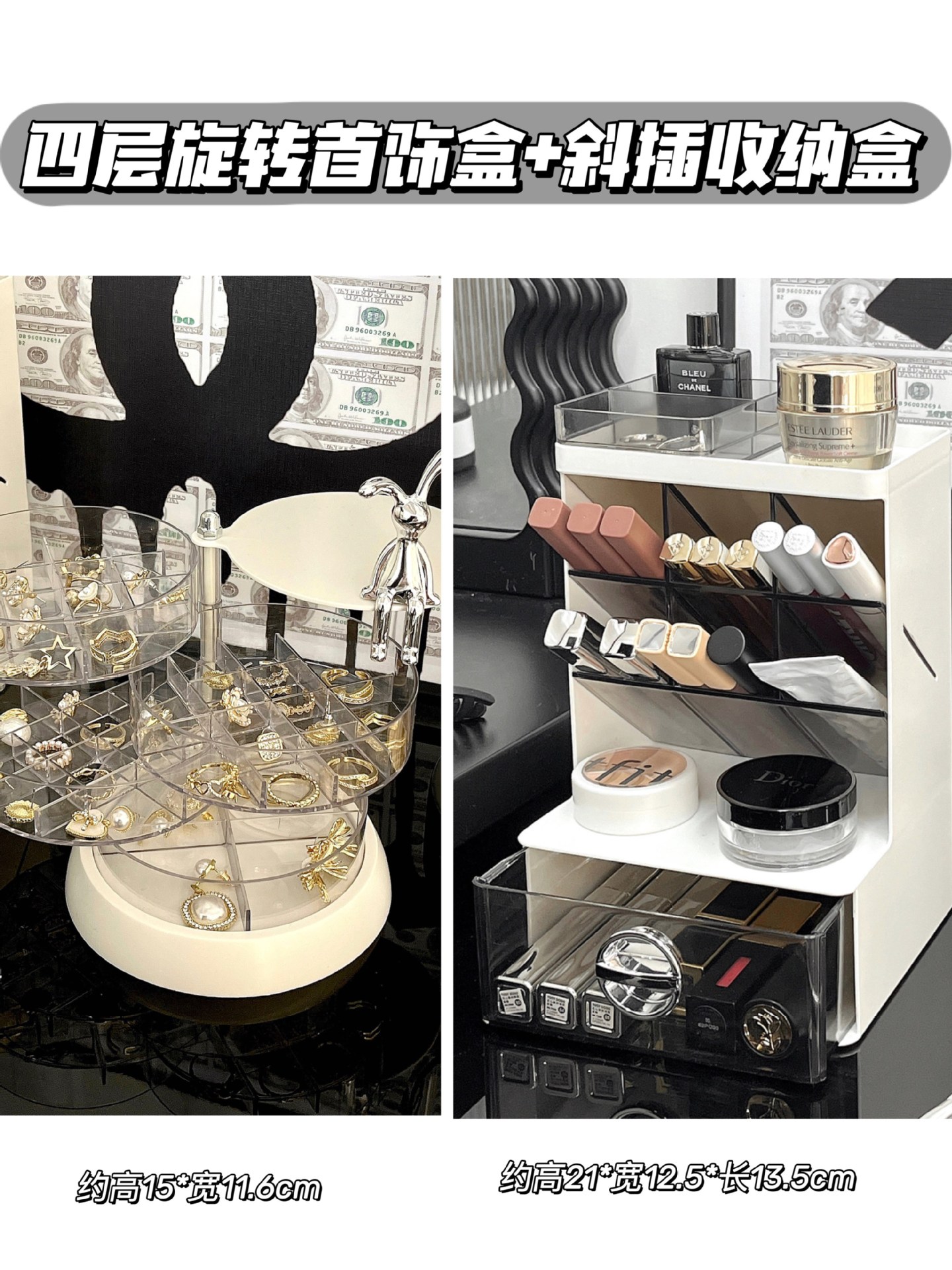 Четырехслойная вращающаяся шкатулка для драгоценностей + косая шкатулка для хранения с кроликом