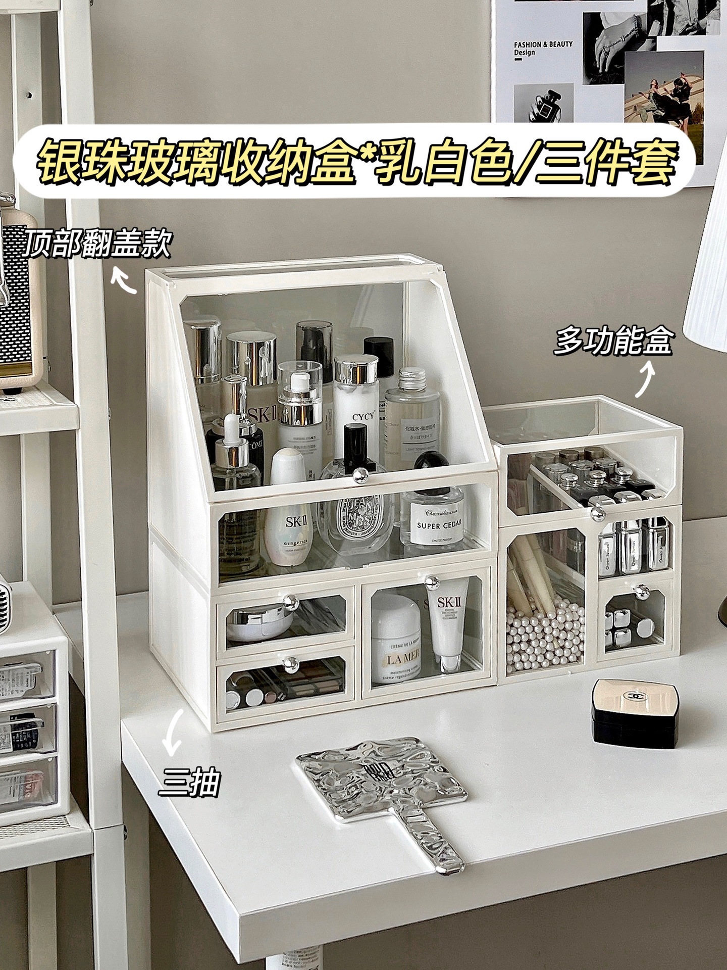 Серебряная шкатулка для хранения бусин*молочно-белый/набор из трех предметов