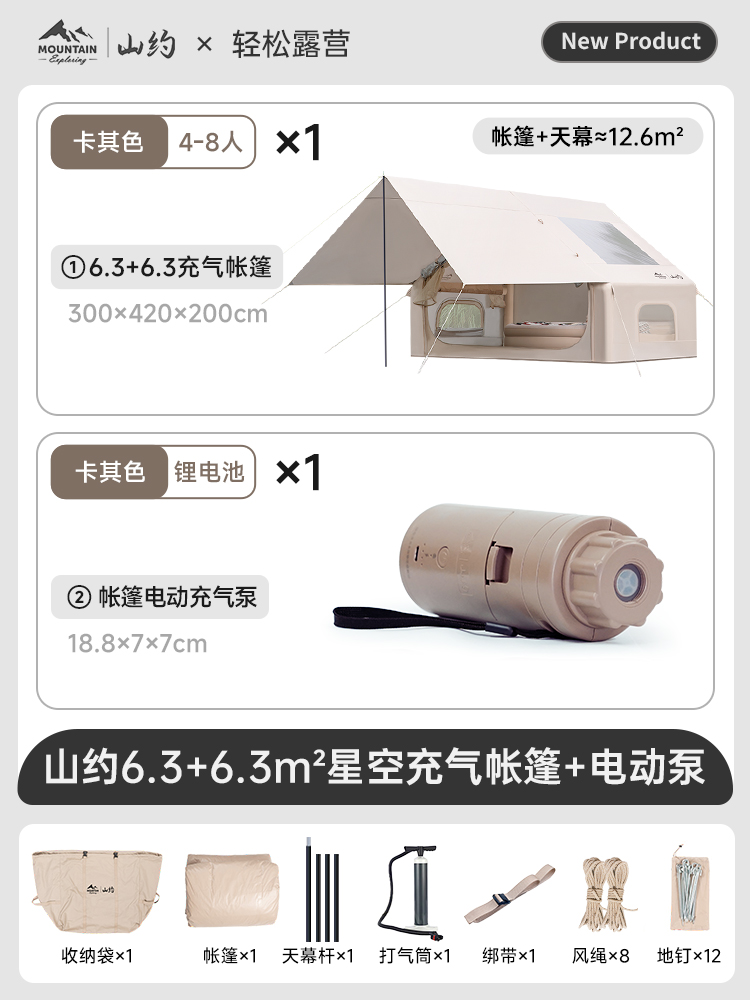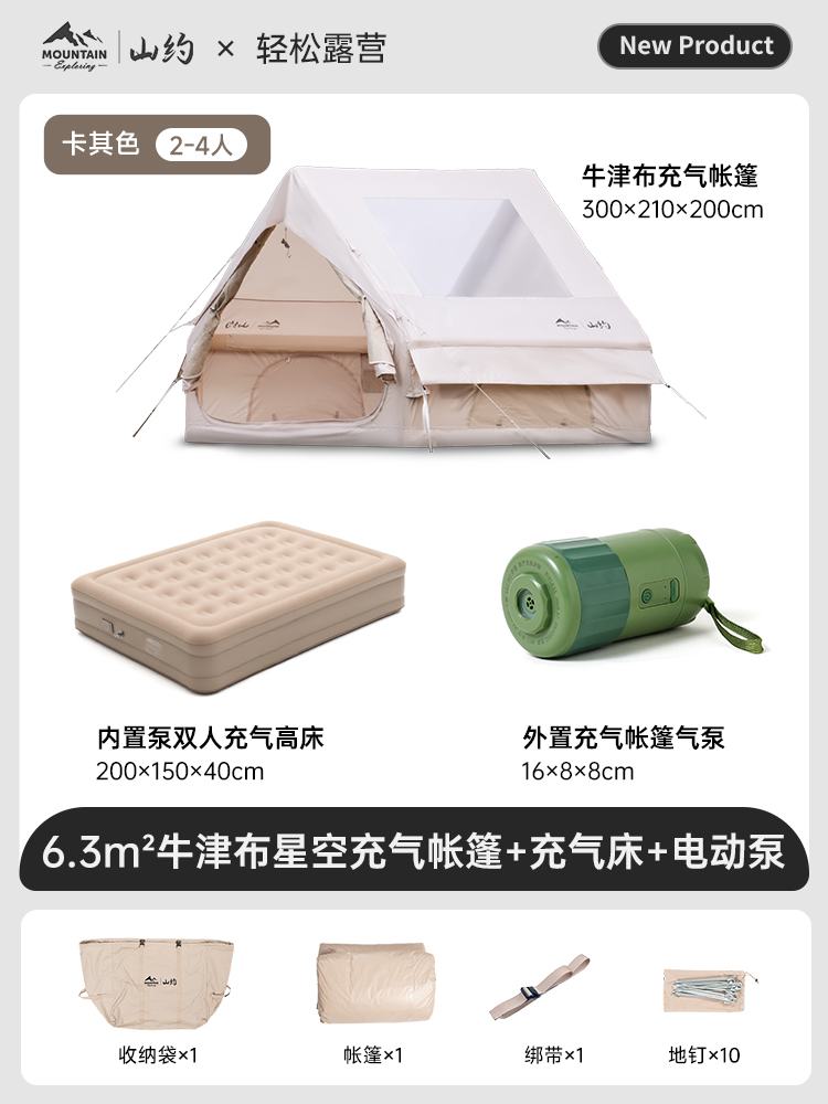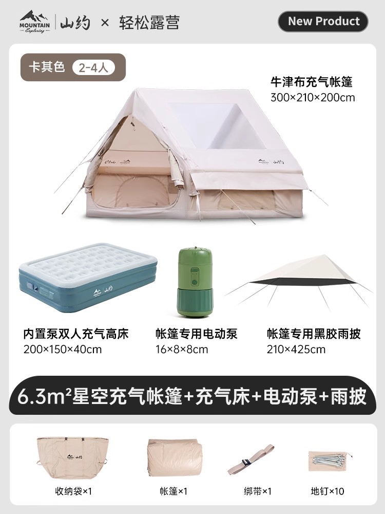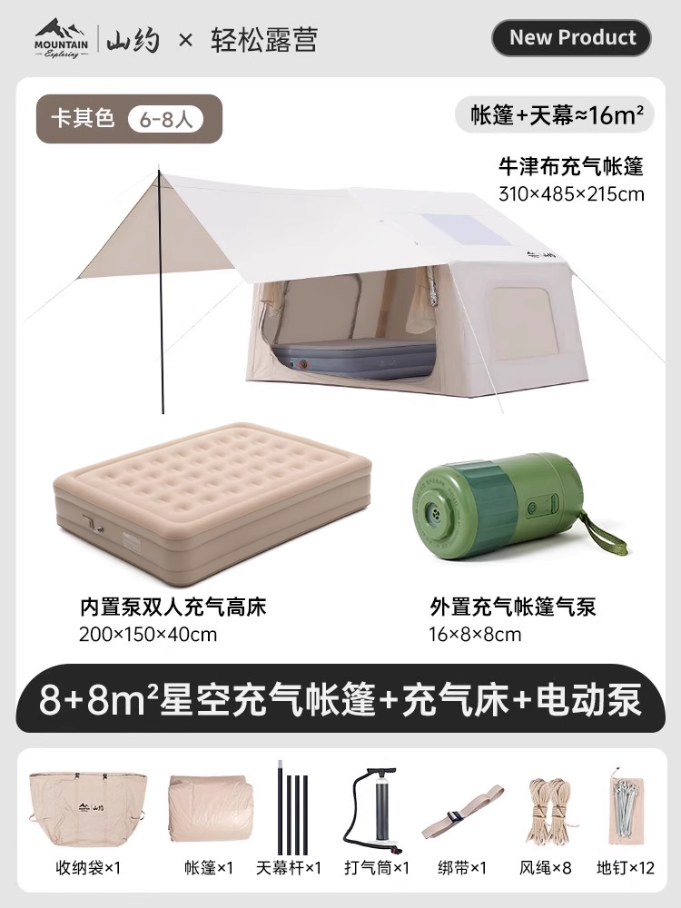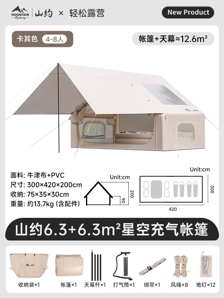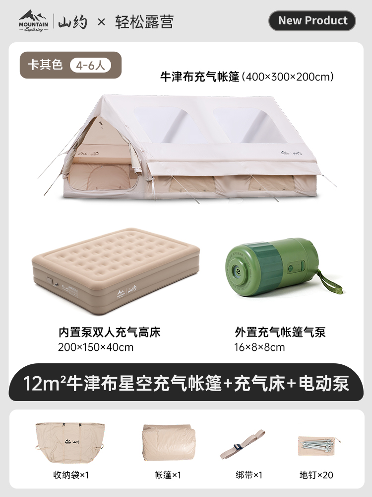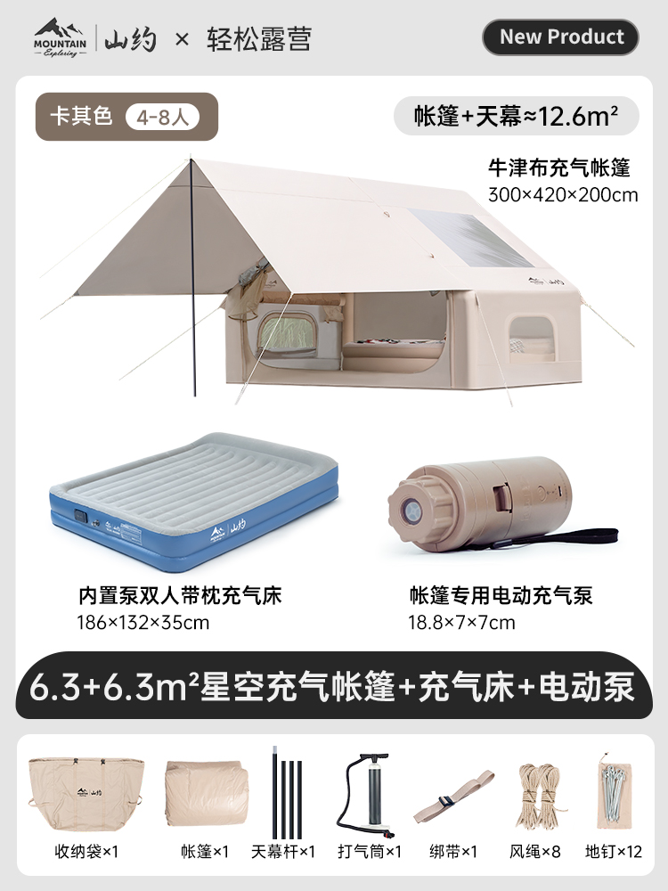[Ветрозащитный и непромокаемый] Ткань Оксфорд [6,3 м²] Стандартная модель + электрический насос + автоматическая надувная кровать