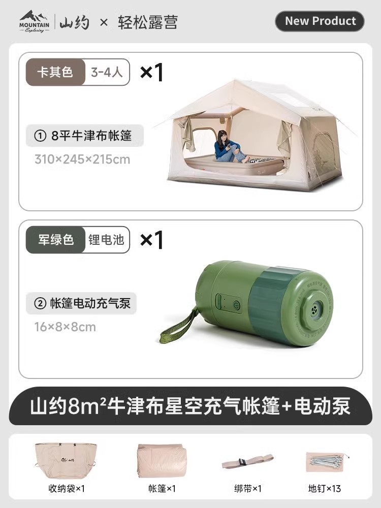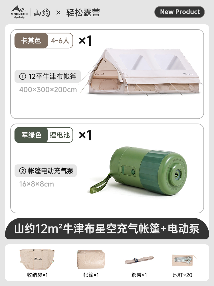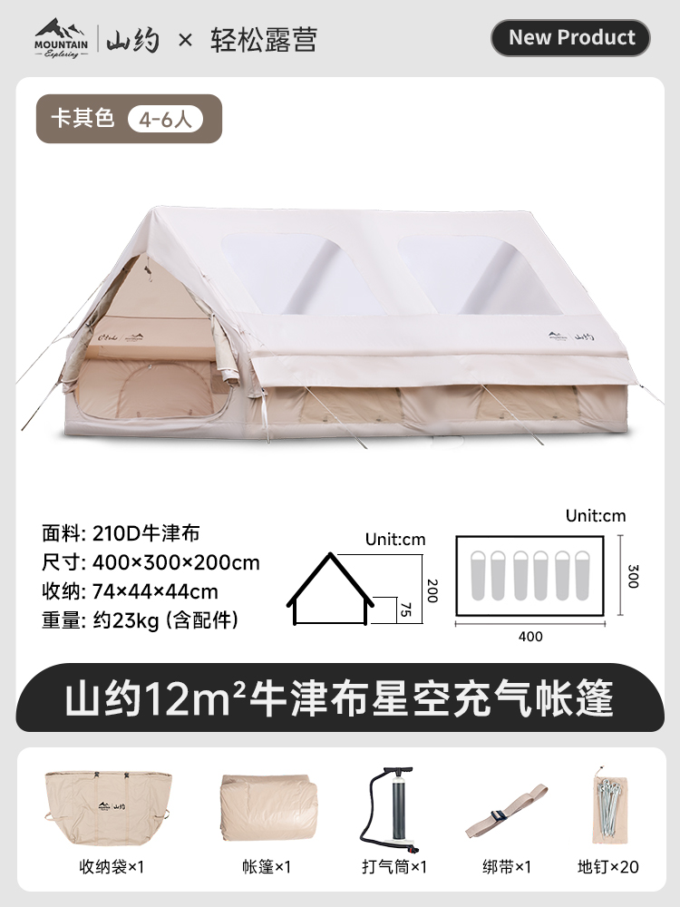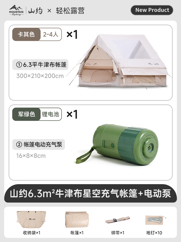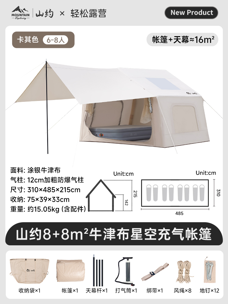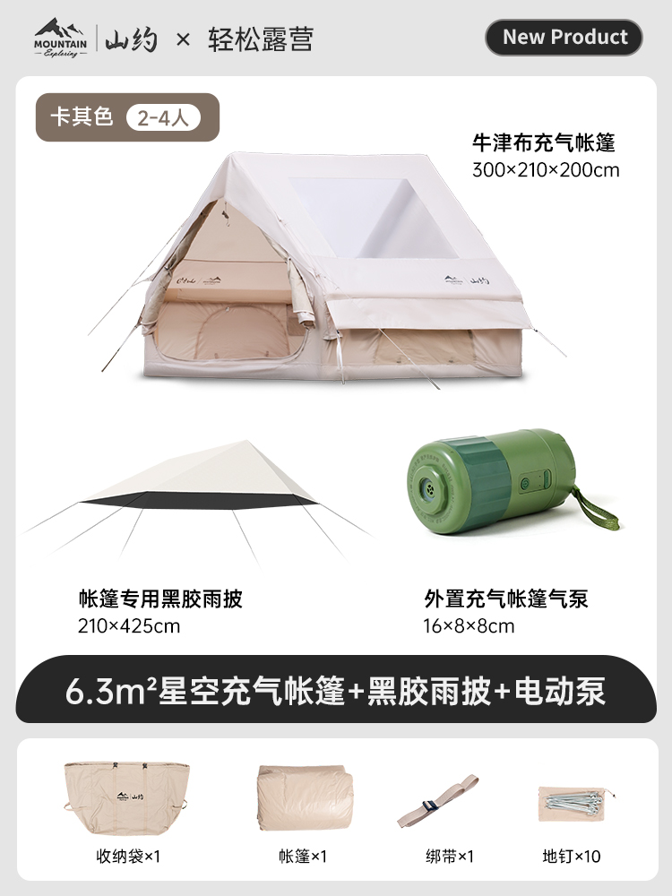 [Ветрозащитный и непромокаемый] Ткань Оксфорд [6,3 м²] Стандартная модель + электрический насос + автоматическая надувная кровать
