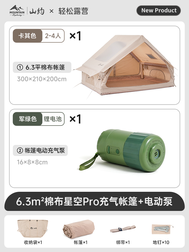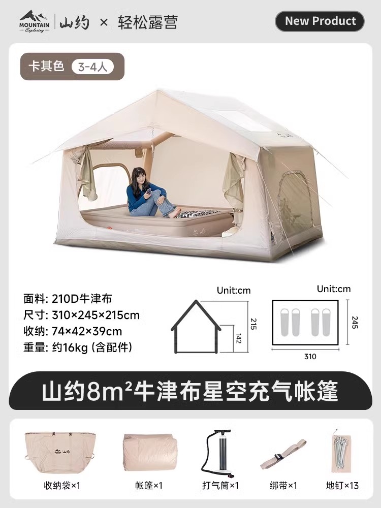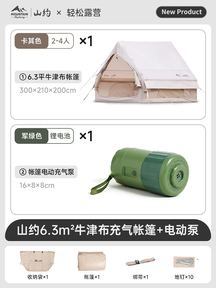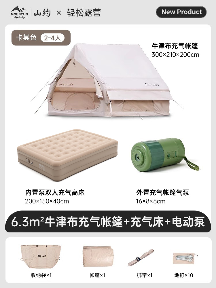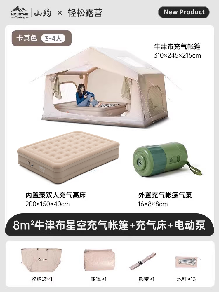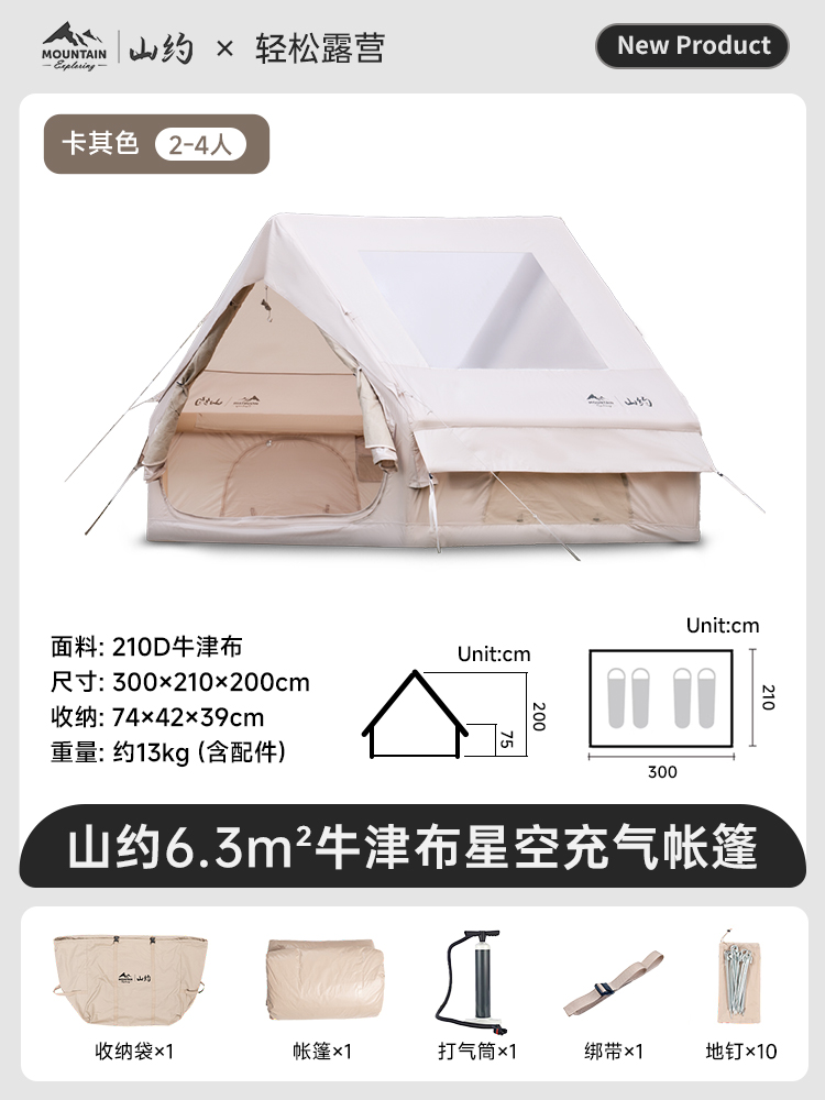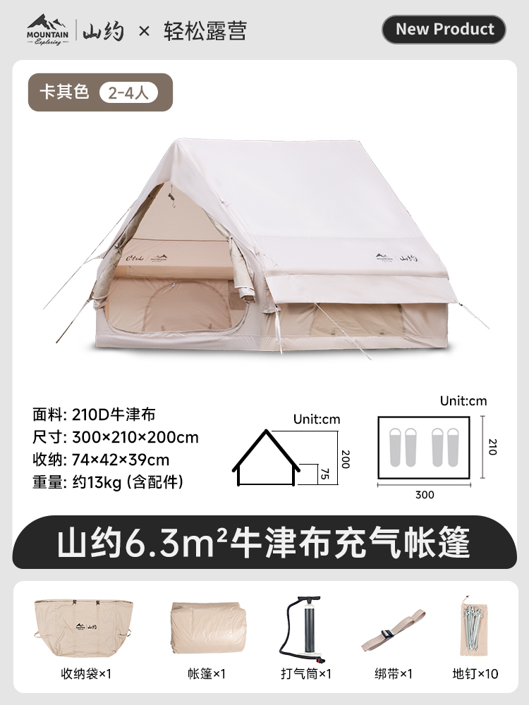 [Ветрозащитный и непромокаемый] Ткань Оксфорд [6,3 м²] Стандартная модель + электрический насос + автоматическая надувная кровать