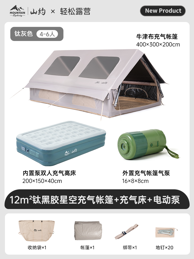 [Ветрозащитный и непромокаемый] Ткань Оксфорд [12 м²] Стиль звездного неба + электрический насос + автоматическая надувная кровать