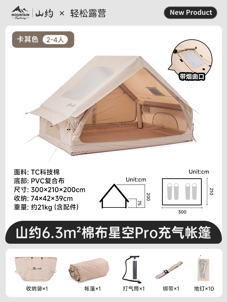 [Ветрозащитный и непромокаемый] Хлопчатобумажная ткань [6,3 м²] Стиль звездного неба + дымоход + электрический насос