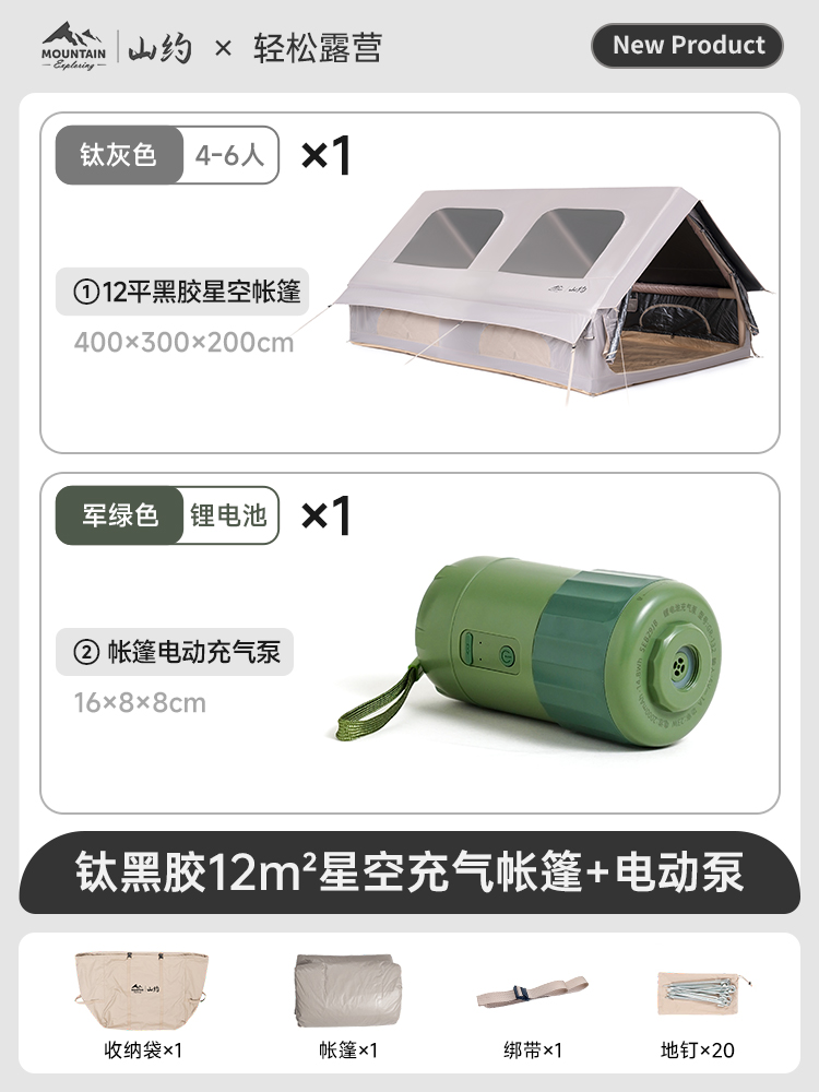 [Защита от солнца и теплоизоляция] Ткань Оксфорд с серебряным покрытием [8+8 м²] Стиль звездного неба + электрический насос + автоматическая надувная кровать