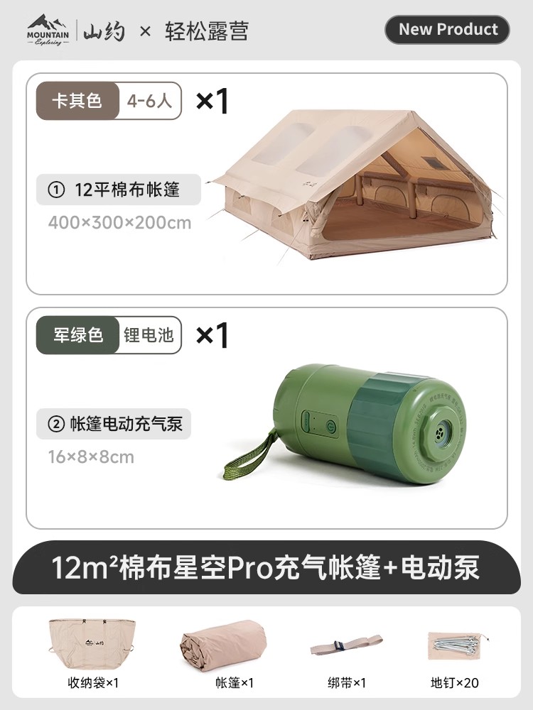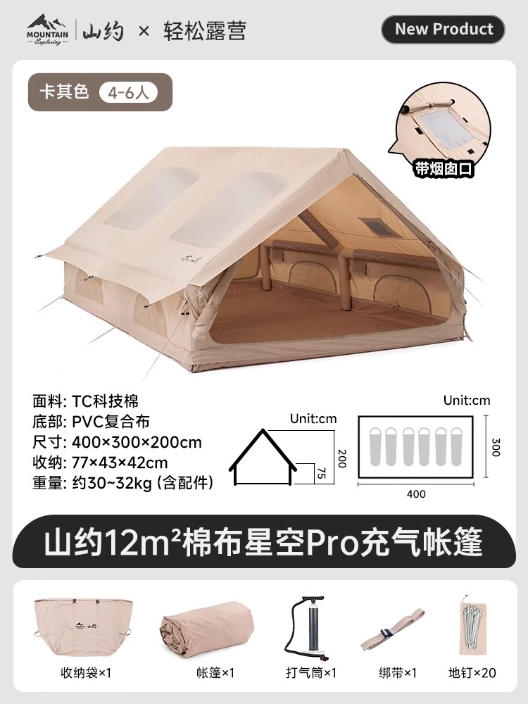 [Ветрозащитный и непромокаемый] Хлопчатобумажная ткань [12 м²] Стиль звездного неба + дымоход + электрический насос