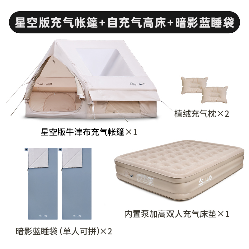 [Ветрозащитный и непромокаемый] Ткань Оксфорд [6,3 м²] Стиль звездного неба + электрический насос + автоматическая надувная кровать