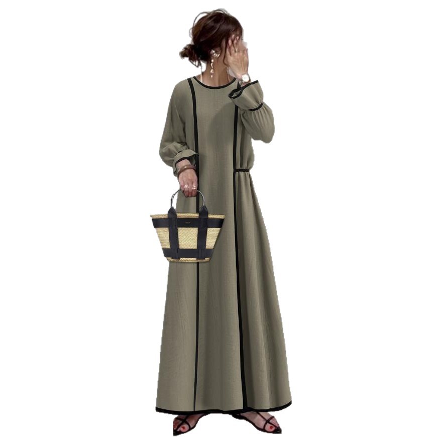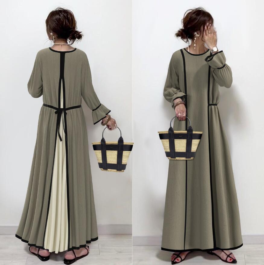 Качественная ткань в наличии для трансграничных продаж, осень-зима 2025, платье с длинными рукавами и облегающим силуэтом, с контрастными вставками на спине, длинная юбка с подолом для женщин.