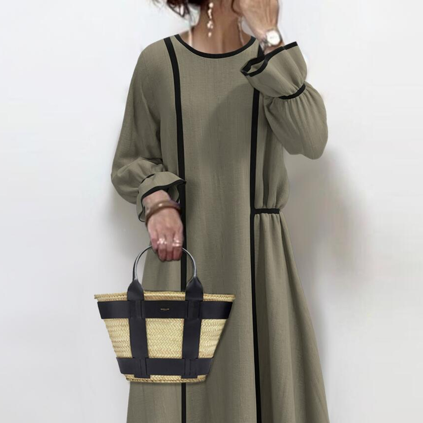 Главная страница > Качественная ткань в наличии для трансграничных продаж, осень-зима 2025, платье с длинными рукавами и облегающим силуэтом, с контрастными вставками на спине, длинная юбка с подолом для женщин.
