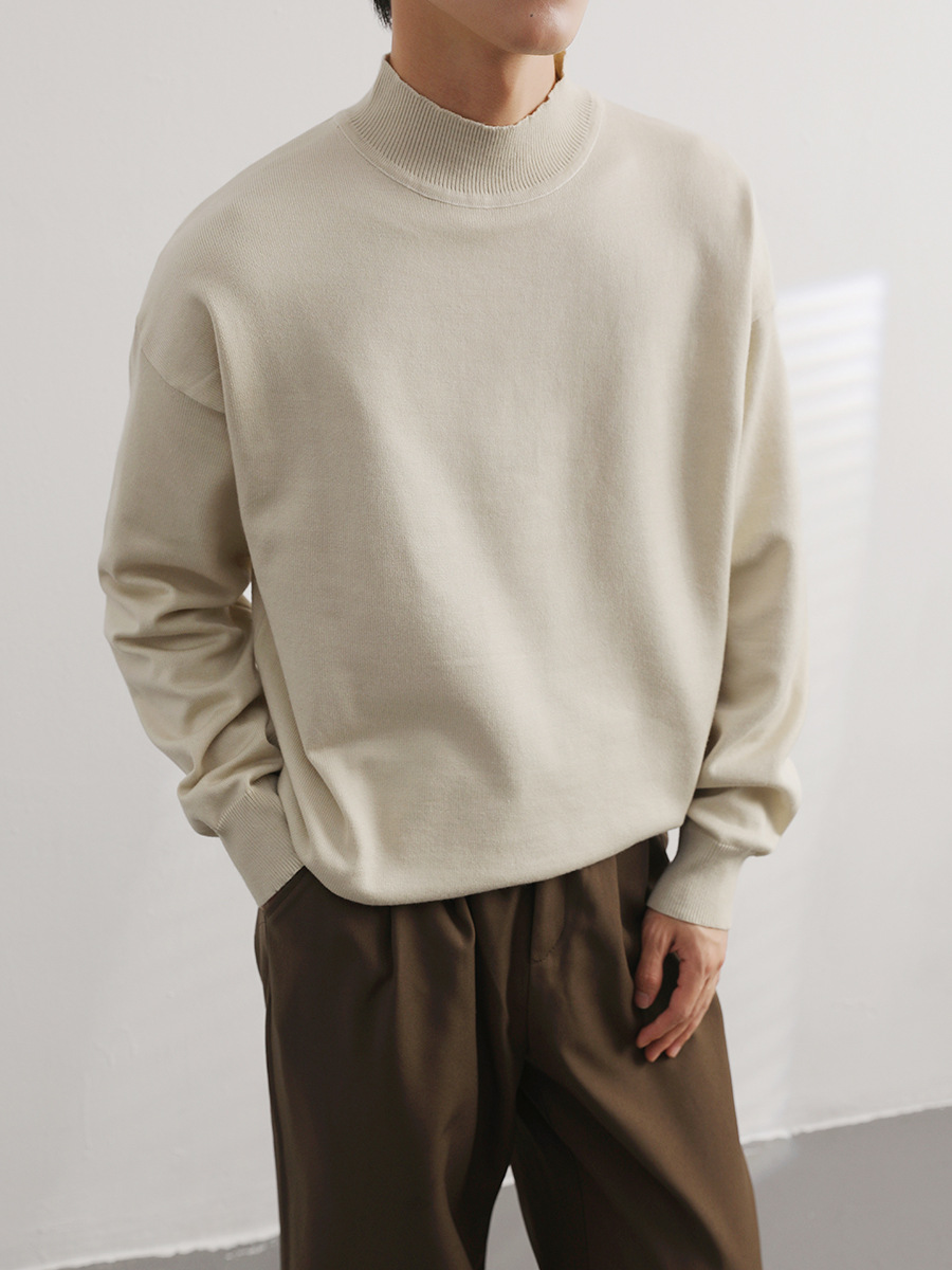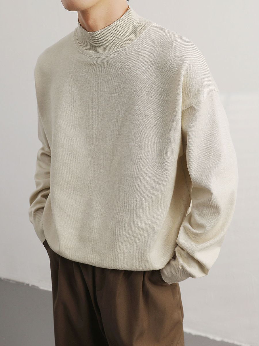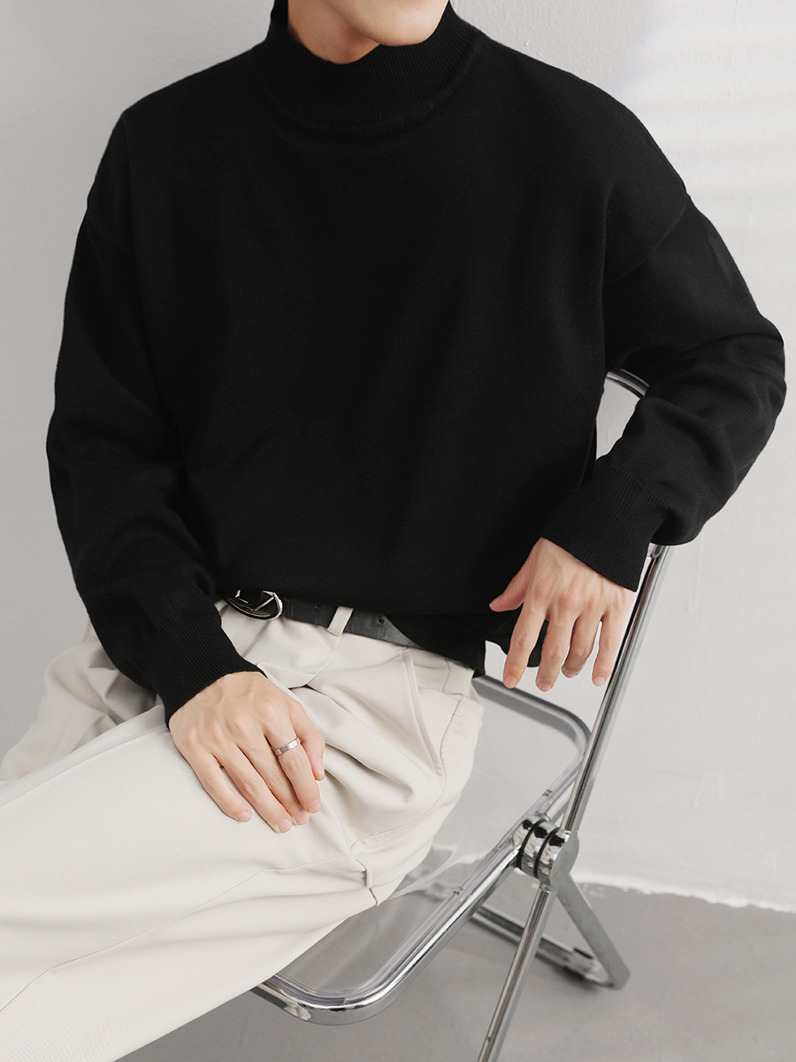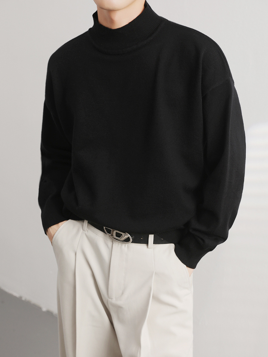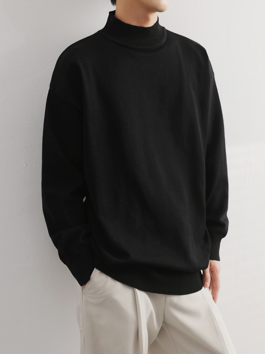 Главная страница > Осенне-зимний свитер с высоким воротом, Базовая рубашка, Мужская простая нишевая свободная модная внутренняя Однотонная футболка с длинными рукавами
