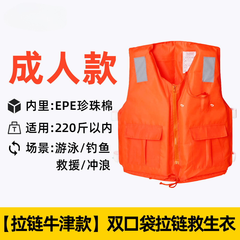 [Молния в стиле Оксфорд] Спасательный жилет на молнии с двойным карманом для взрослых