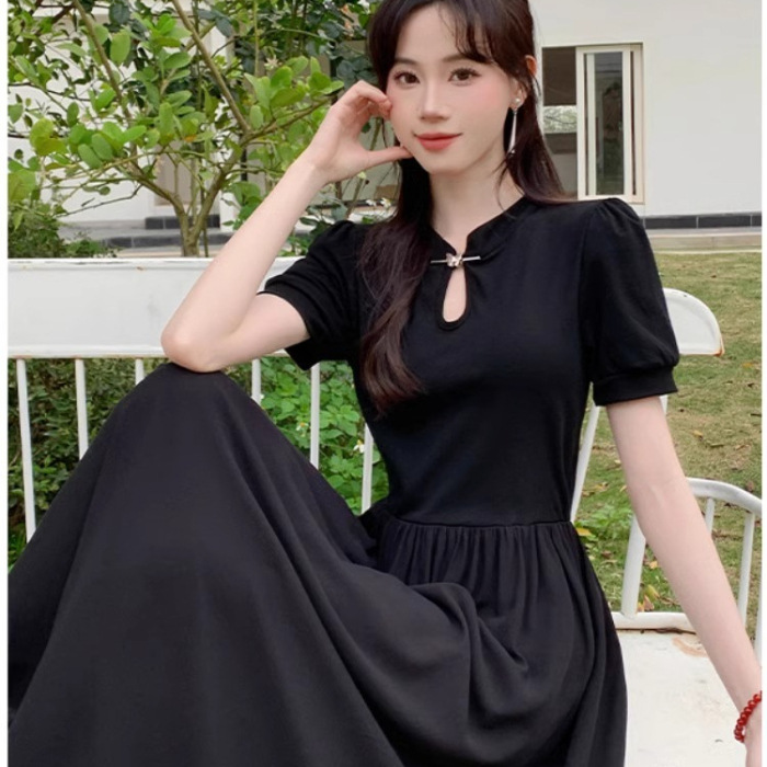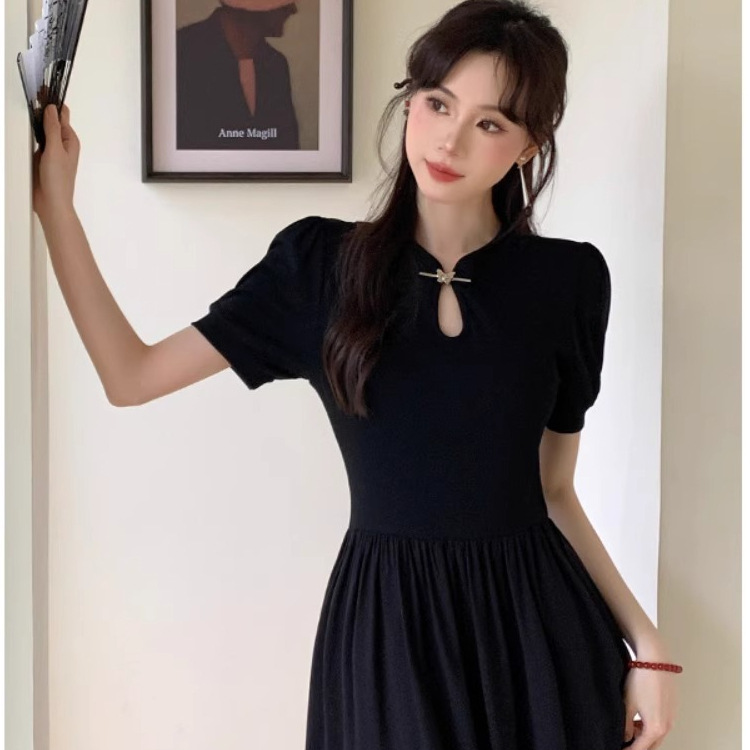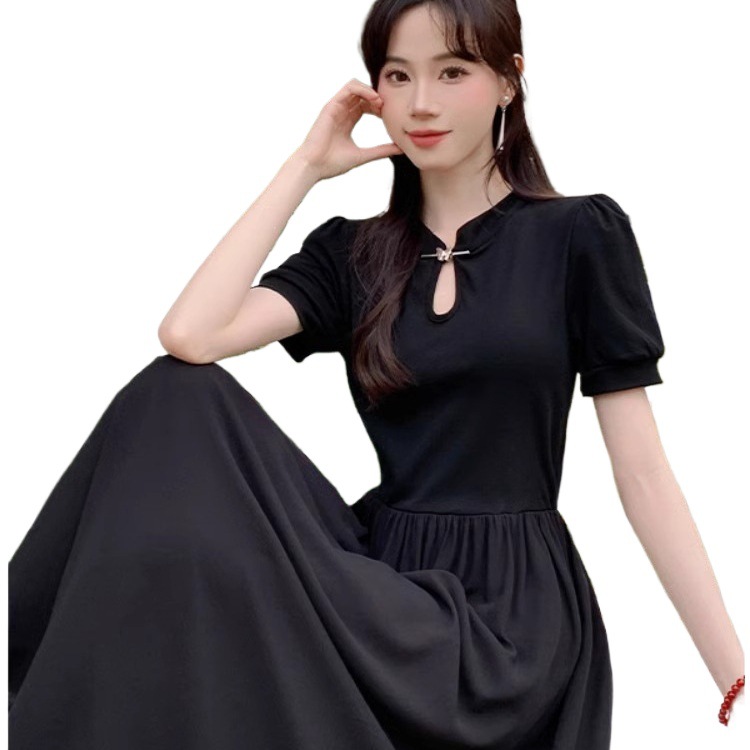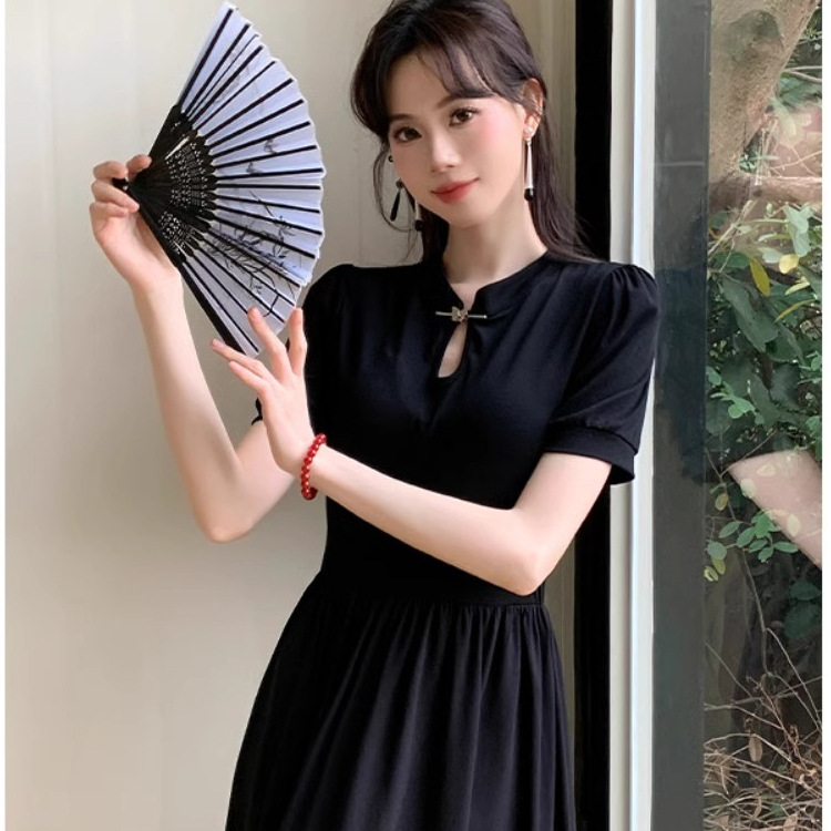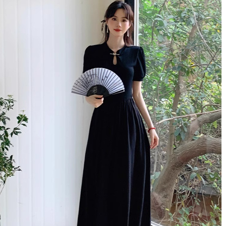 Главная страница > 2024 новая женская одежда Новый китайский стиль ретро национальное платье летняя талия маленькая черная юбка показывает тонкую юбку