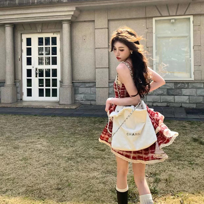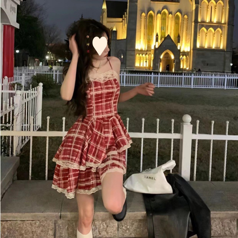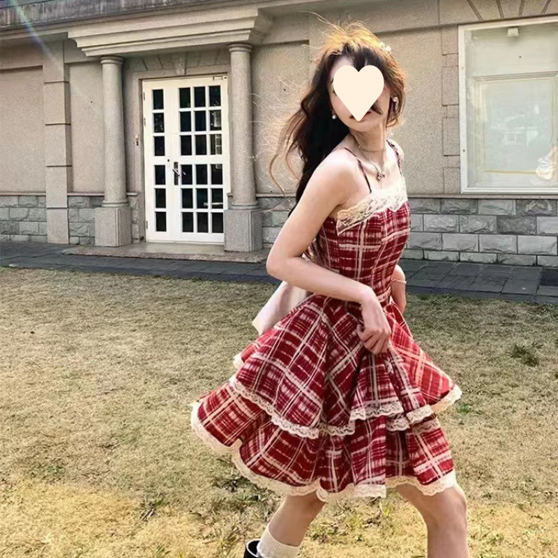 Главная страница > Маленькая высококачественная бело-красная пышная юбка, новинка лета 2025 года, элегантное платье на подтяжках с кружевными краями