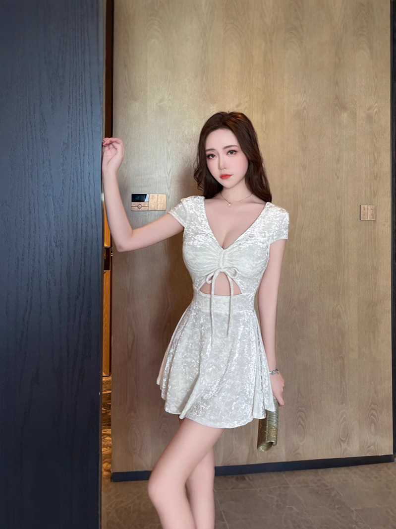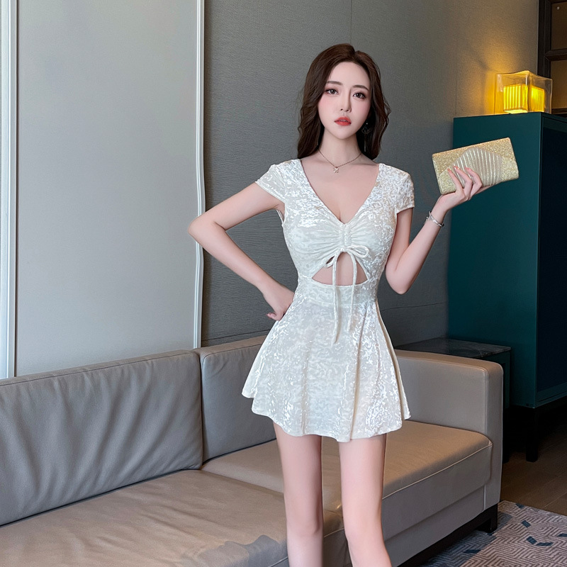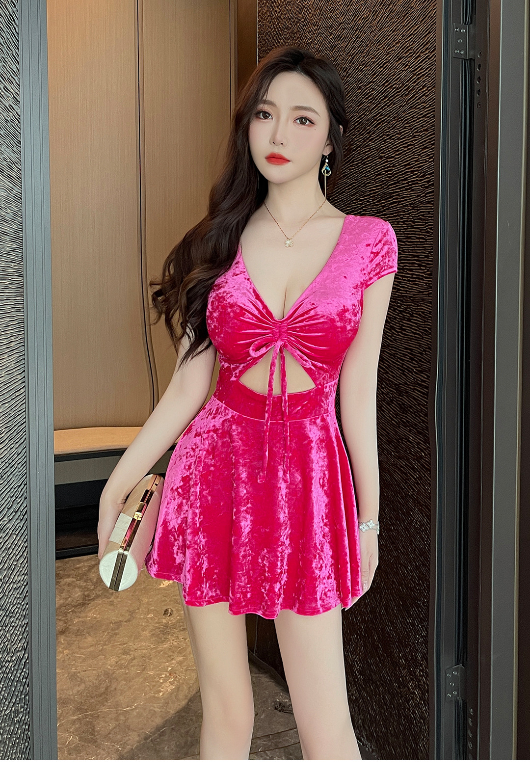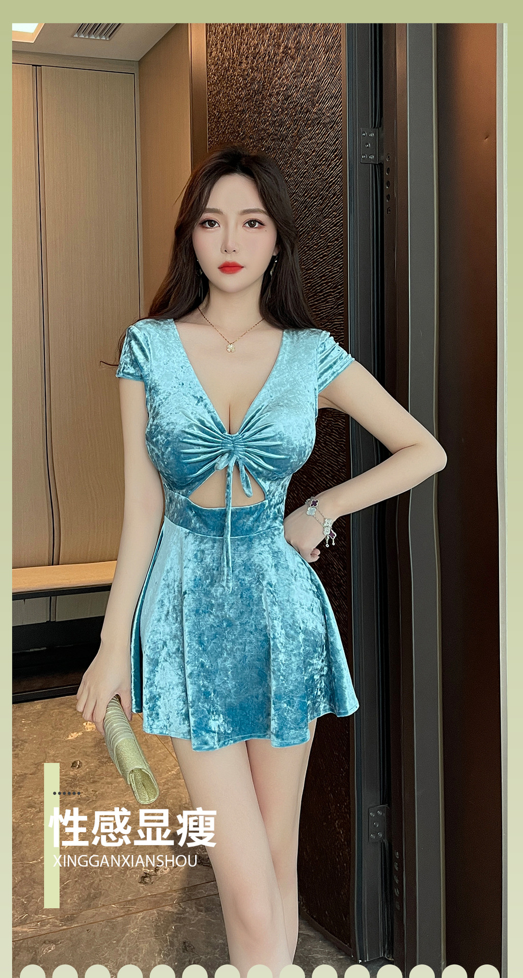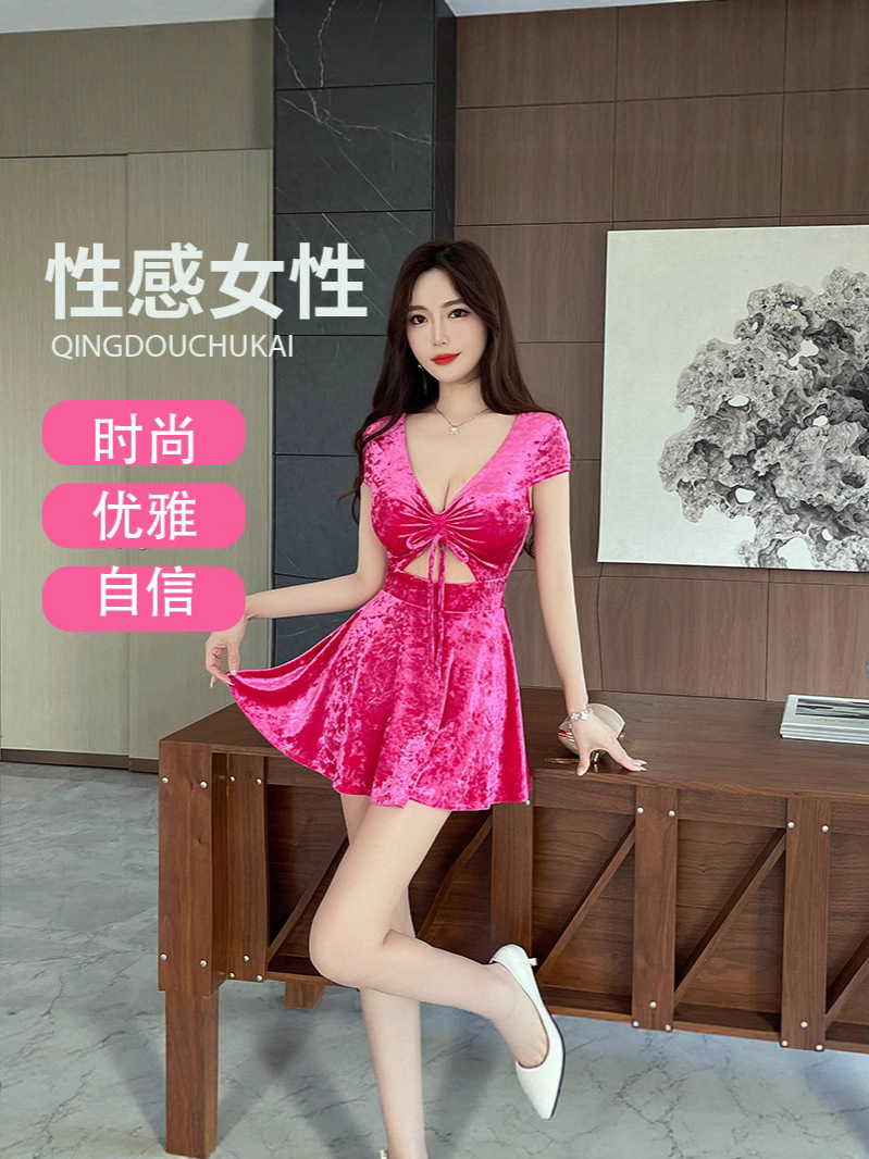 Главная страница > Новое платье Сексуальная ванна с v-образным вырезом в ночном клубе для ног, тонкая талия, стильная темперамент, юбка-маятник 2038