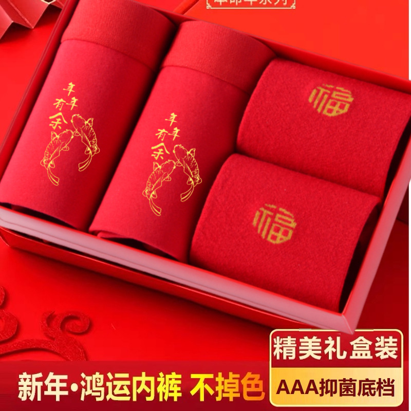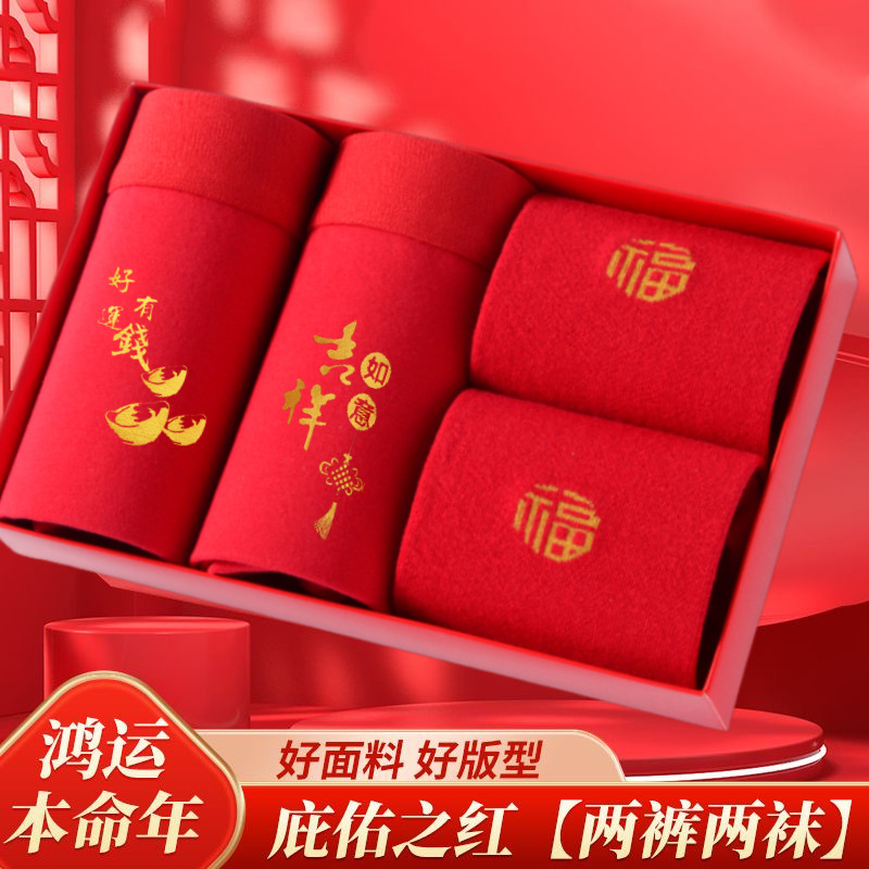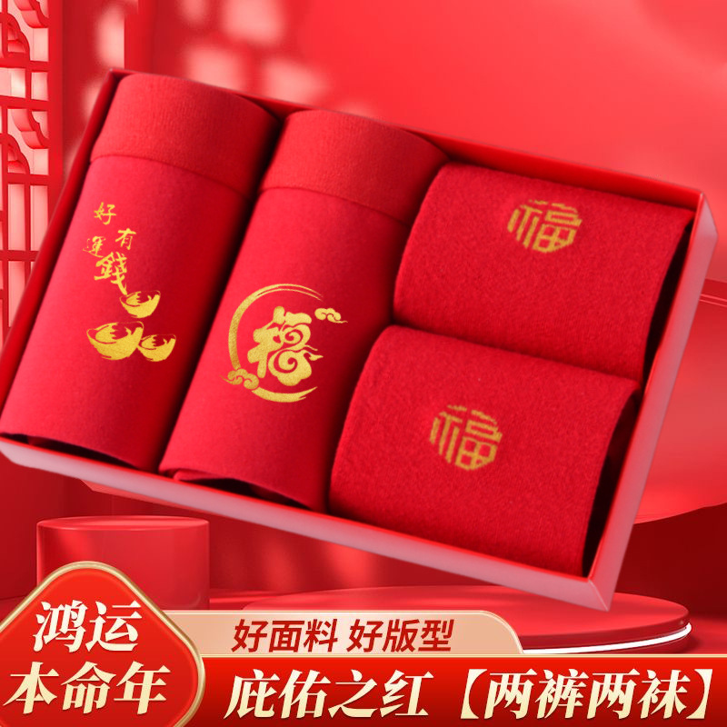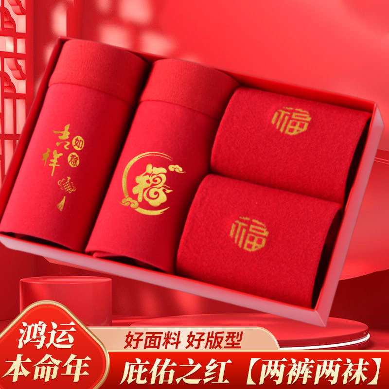 Подарочная коробка из чистого хлопка [2 Jinfu + 2 пары красных носков]