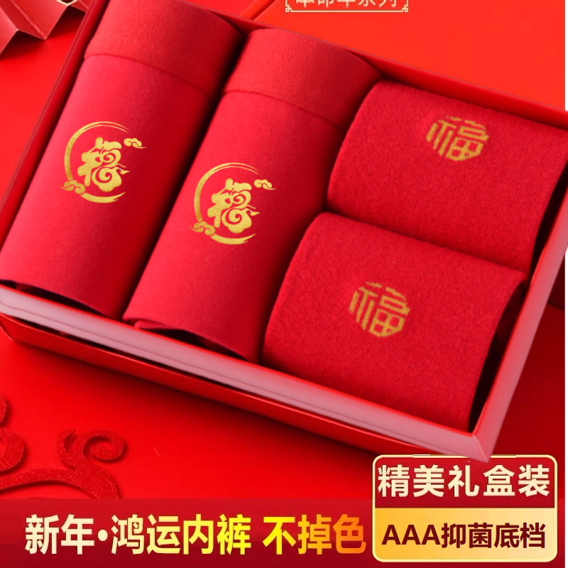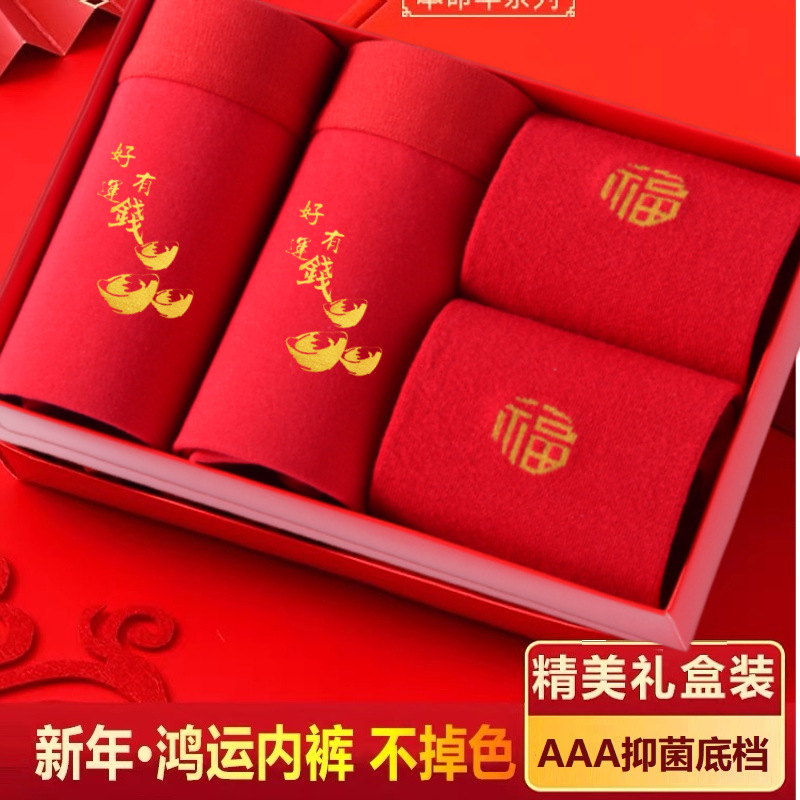 Чистый хлопок в подарочной упаковке [Пять благословений + благоприятные + 2 пары красных носков]