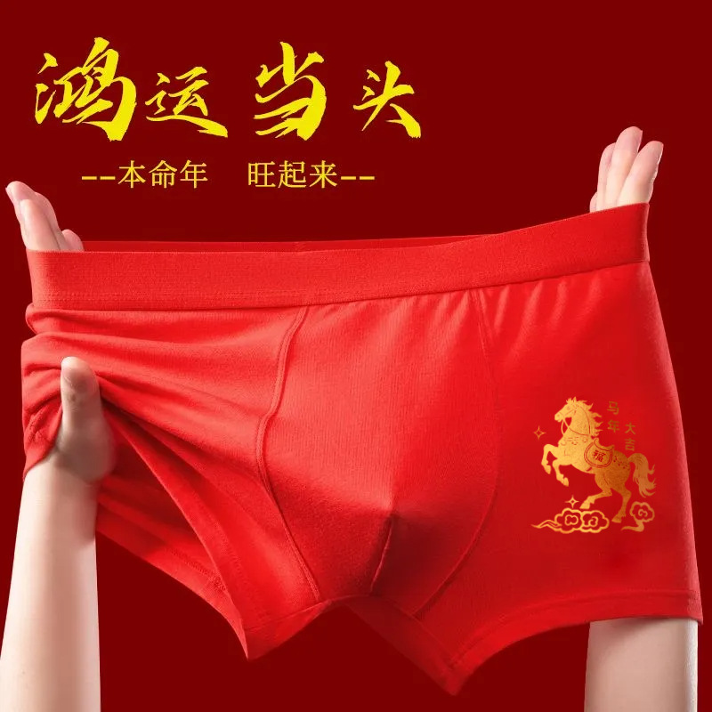 Мужские красные трусы-боксеры к Году Лошади, из чистого хлопка, со средней посадкой, шорты на год по знаку зодиака, праздничное новогоднее антибактериальное красное нижнее белье оптом