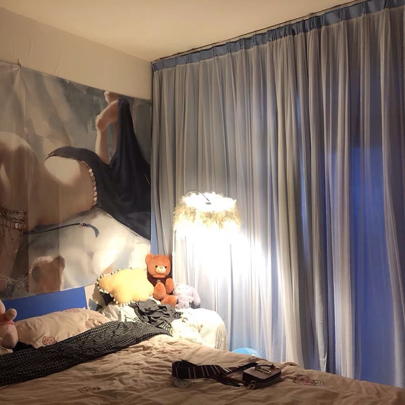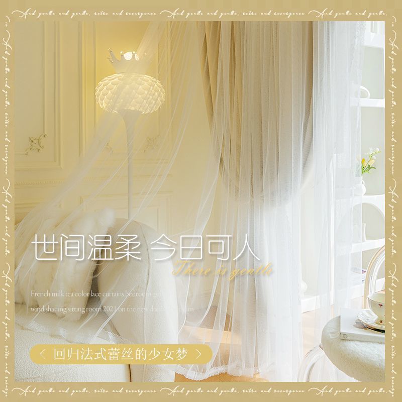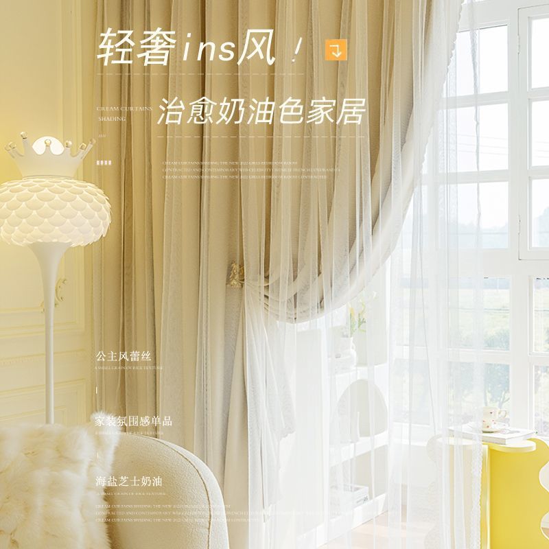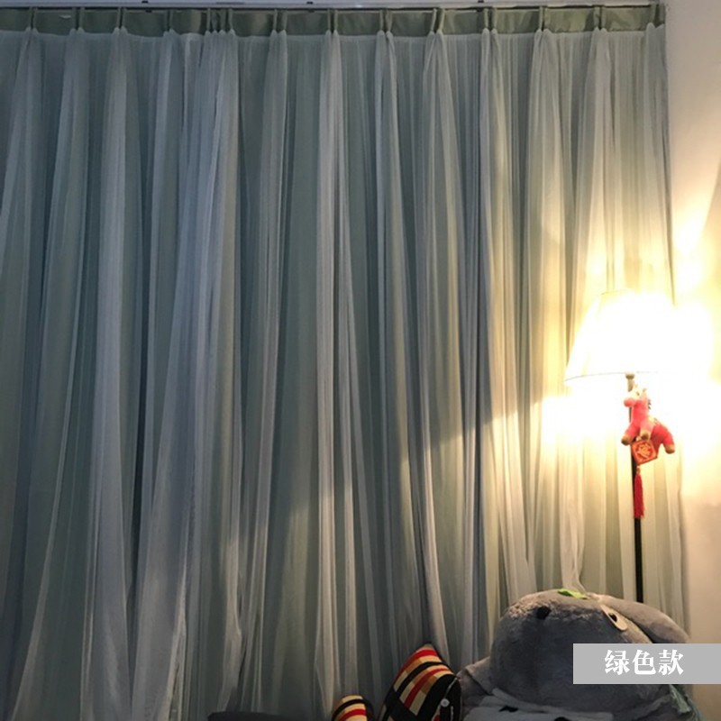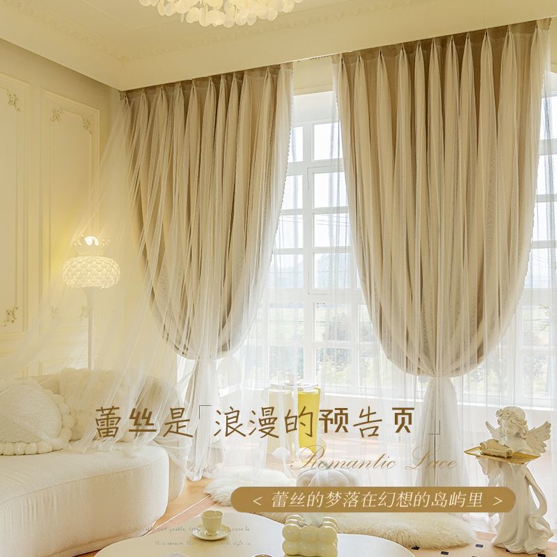 Главная страница > Двухслойные затемняющие занавески для спальни для девочек сетка красная Принцесса Ветер Крем Ветер ins Мечта с марлей