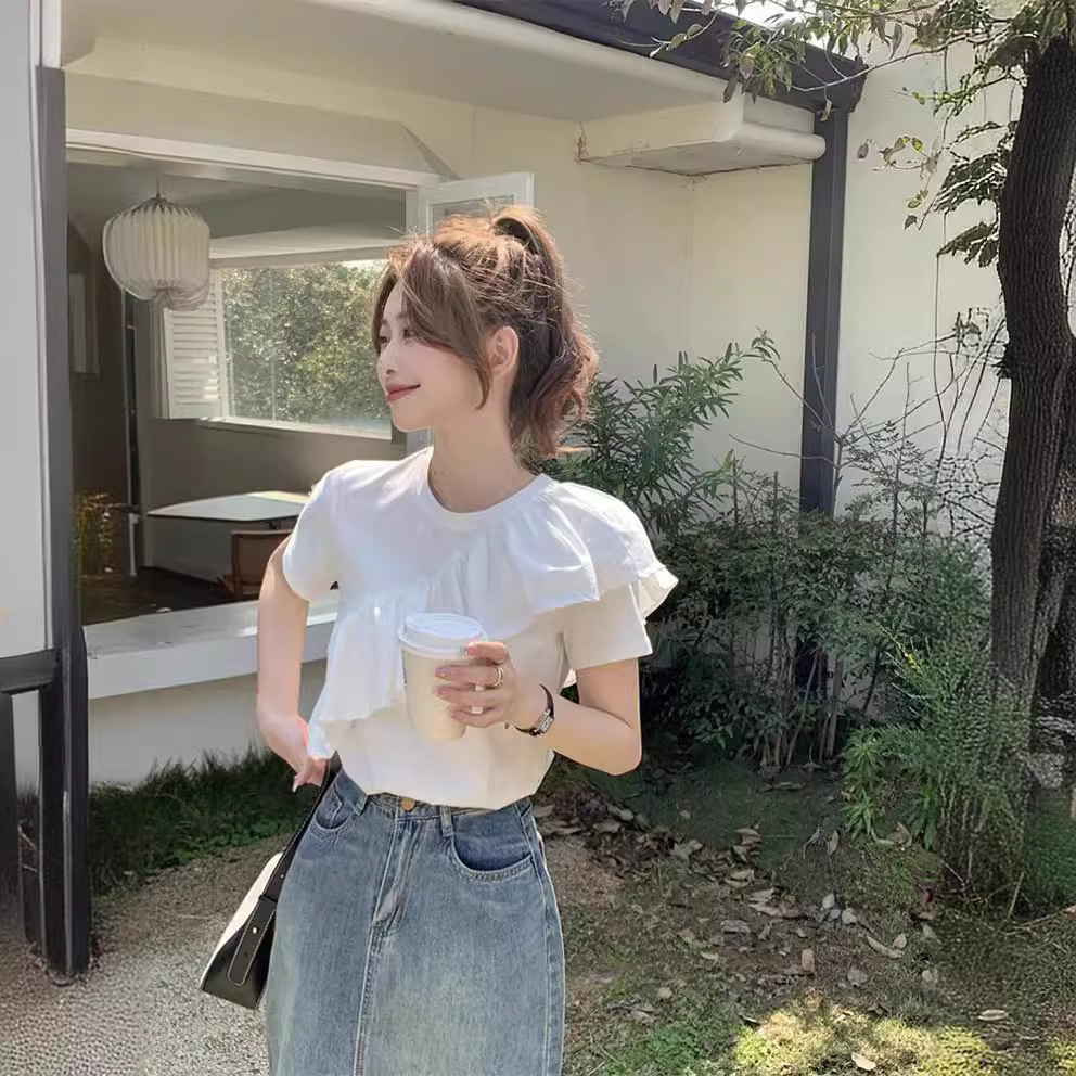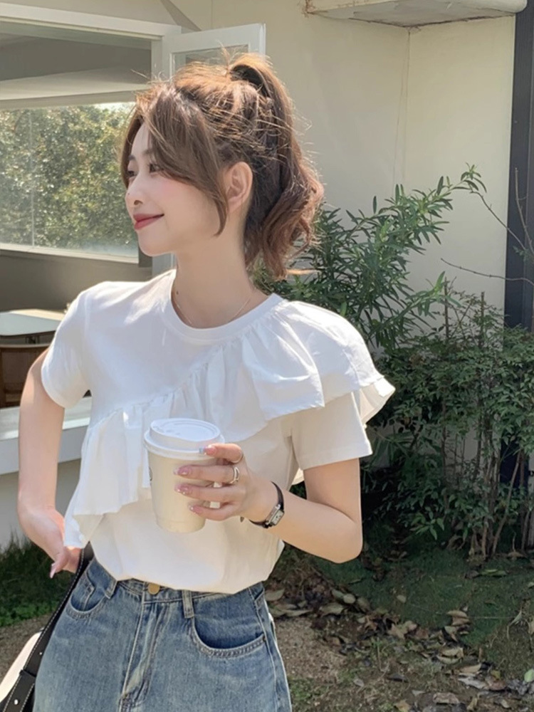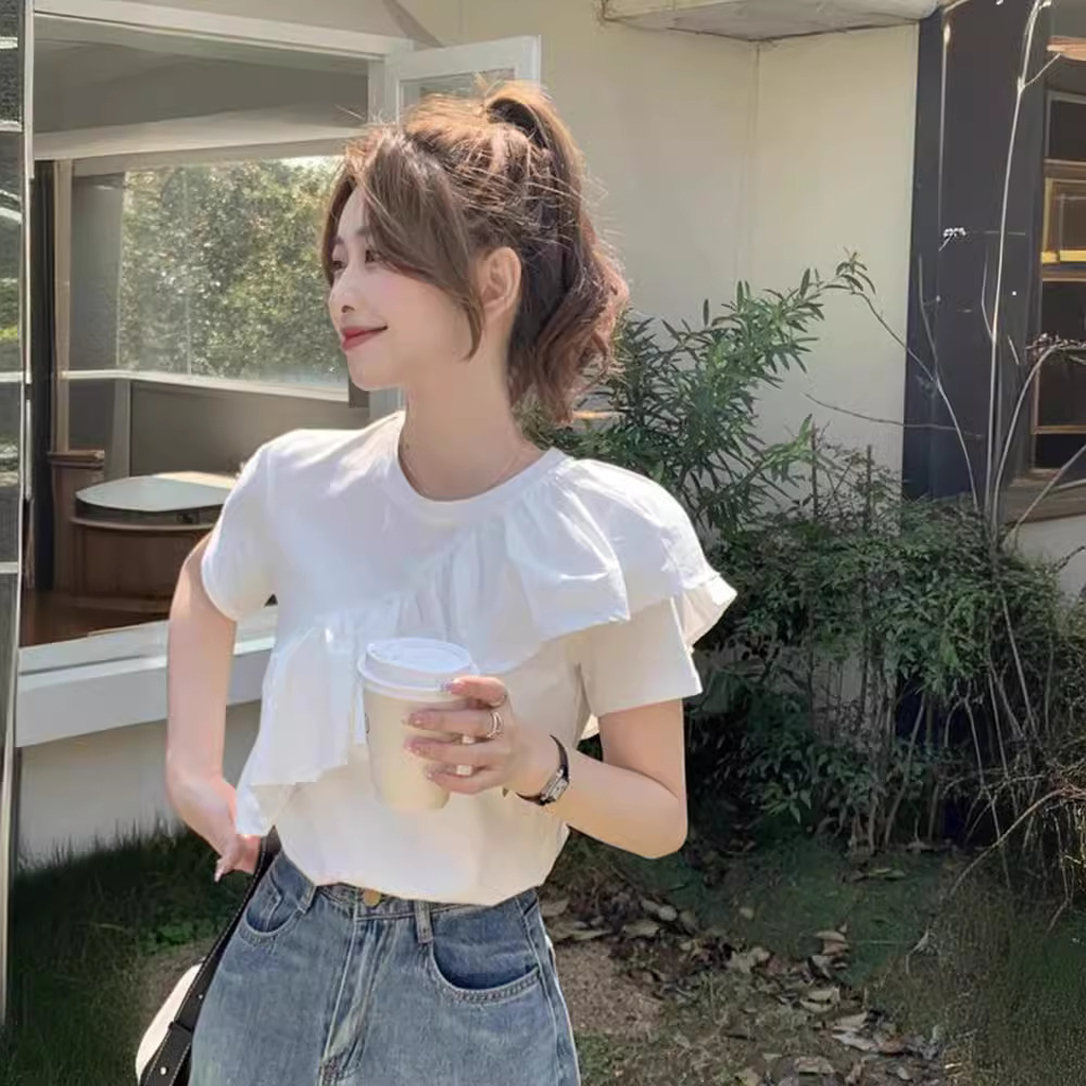 Трансграничные 2024 новые хлопчатобумажные футболки женские короткие рукава летняя одежда с широкими плечами