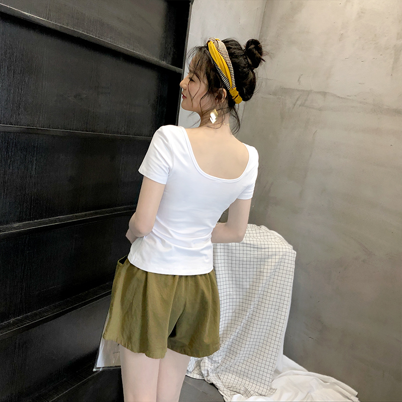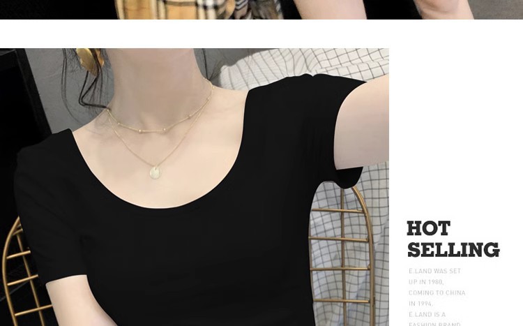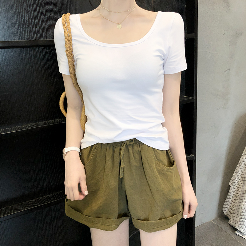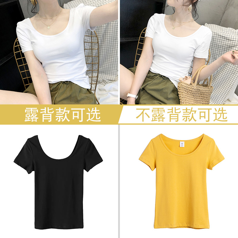 Главная страница > Белая футболка женская рубашка с коротким рукавом 2025 новый низкий воротник обтягивка с воротником