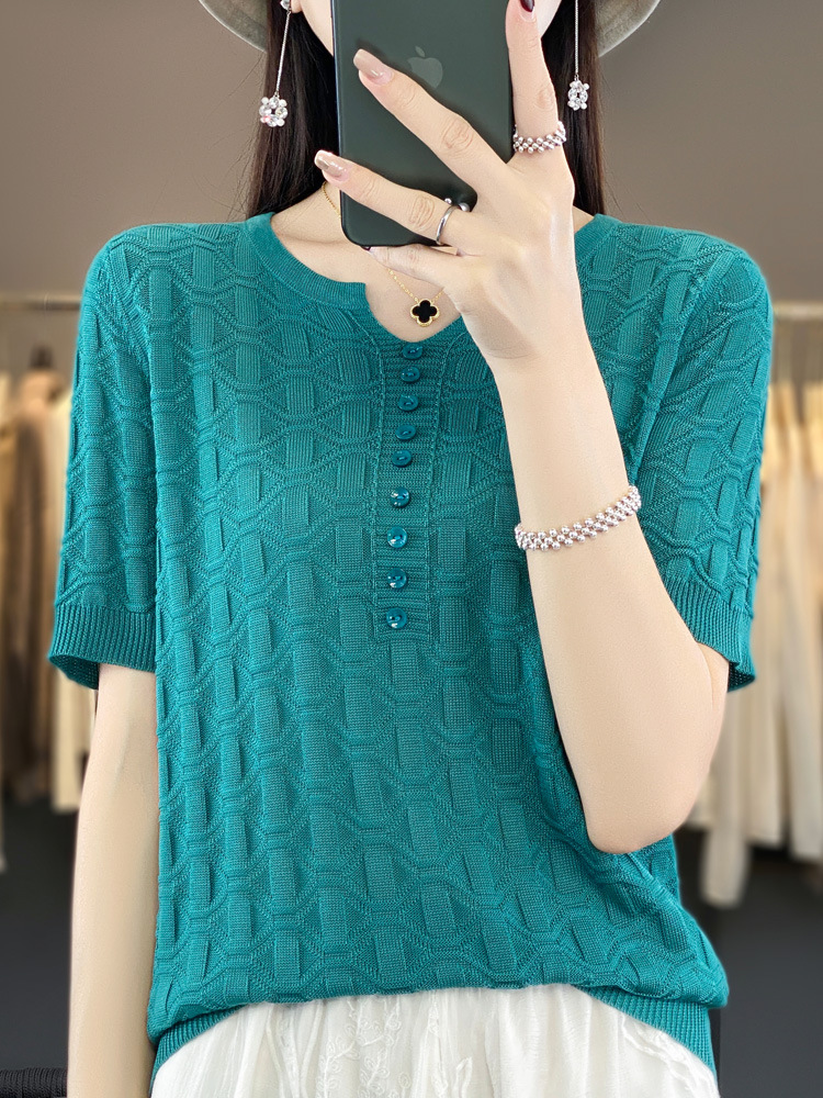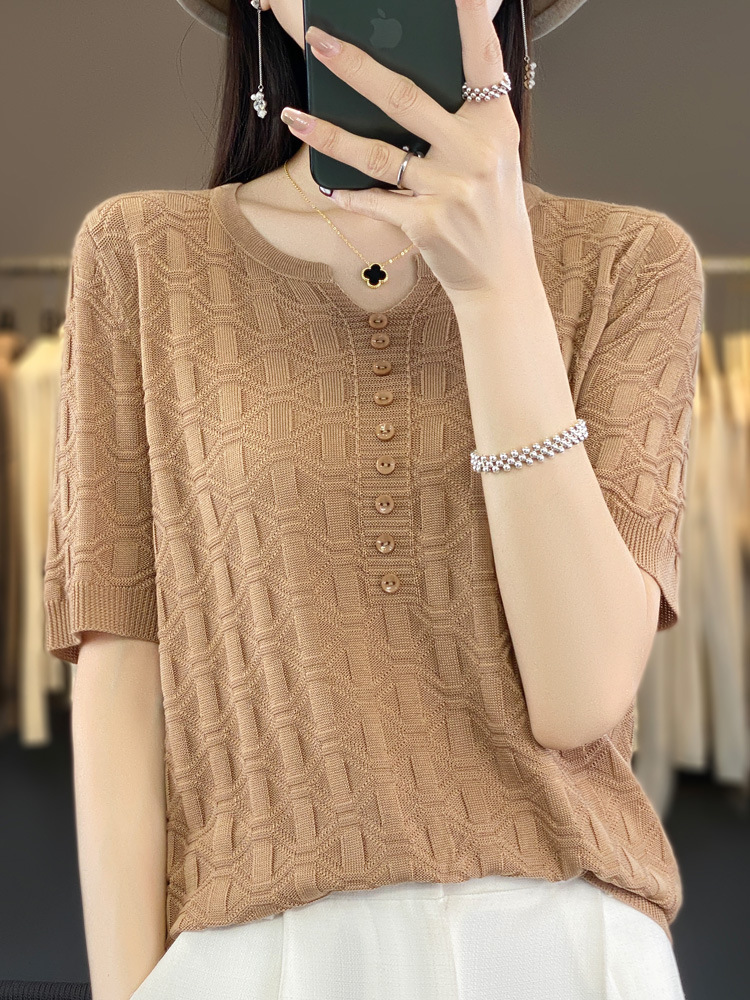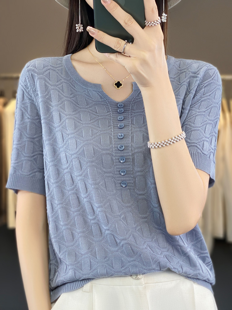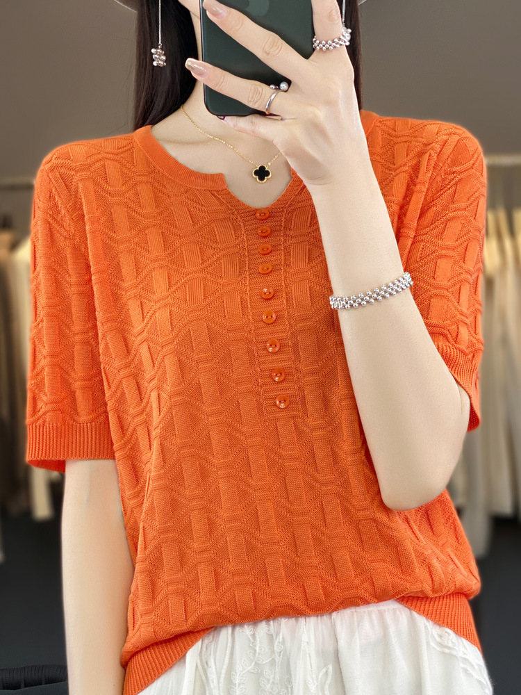 Главная страница > Женская футболка Tencel с короткими рукавами и маленьким V-образным вырезом, лето 25, новый трикотаж с вырезами, тонкий свободный и удобный топ большого размера