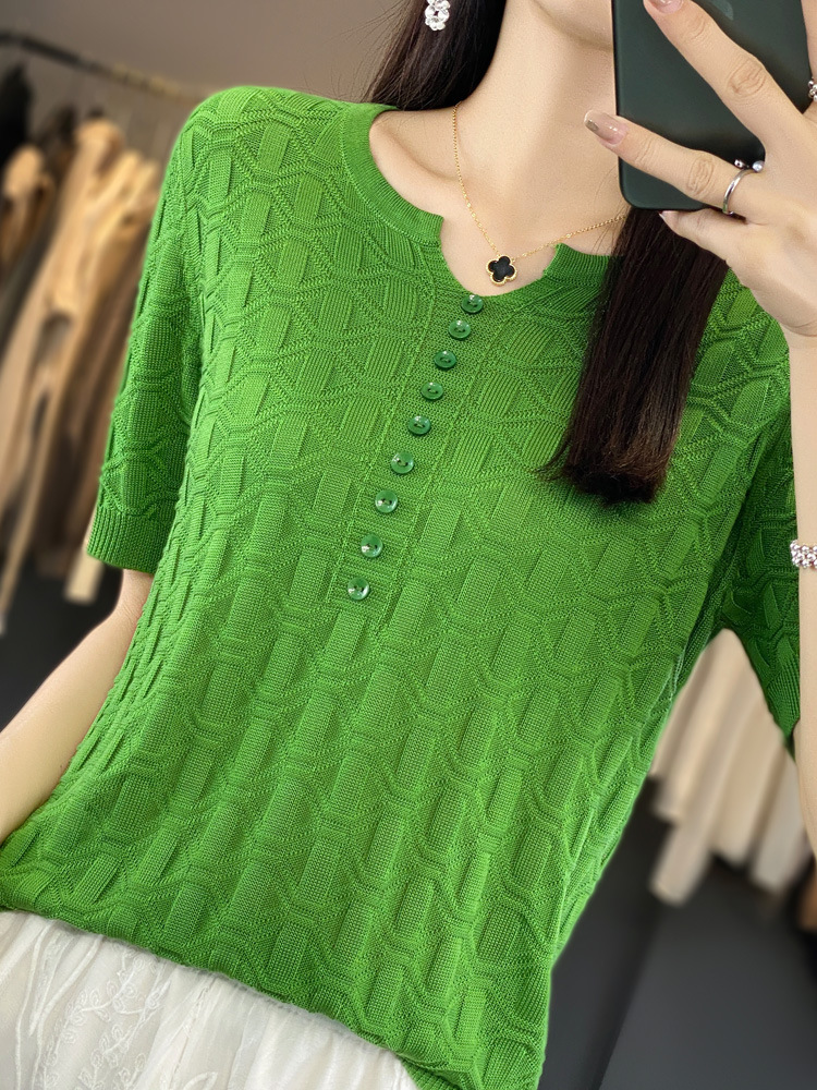 Женская футболка Tencel с короткими рукавами и маленьким V-образным вырезом, лето 25, новый трикотаж с вырезами, тонкий свободный и удобный топ большого размера