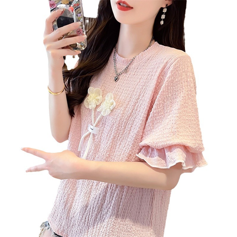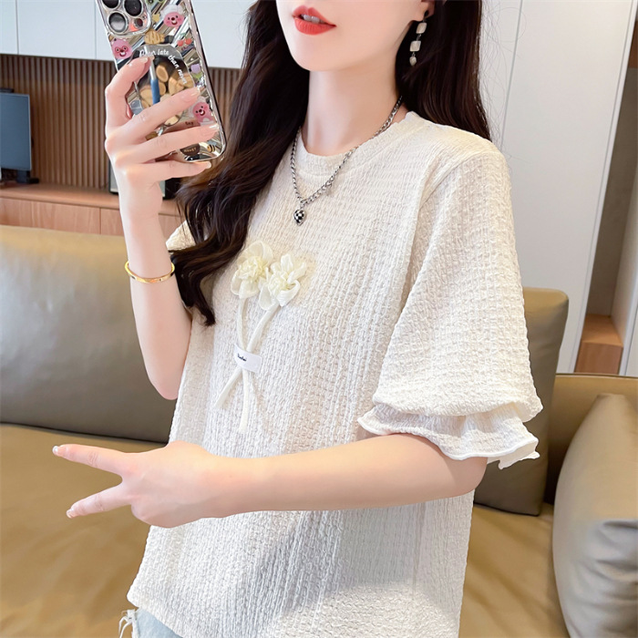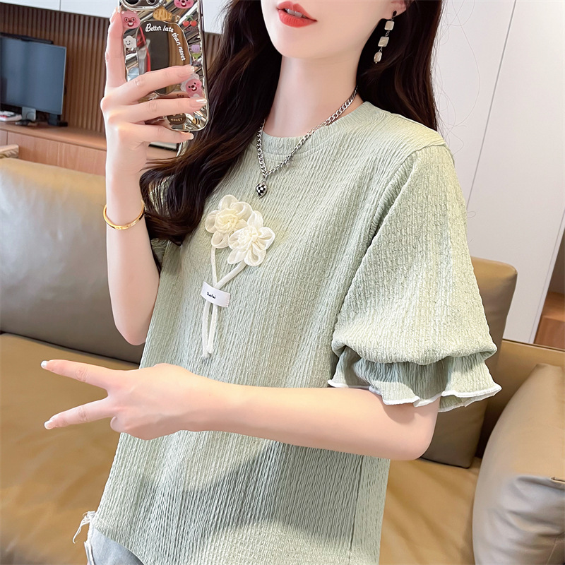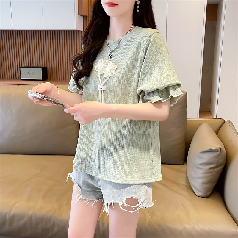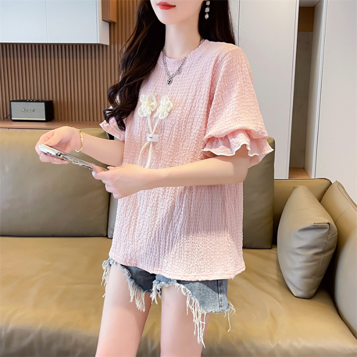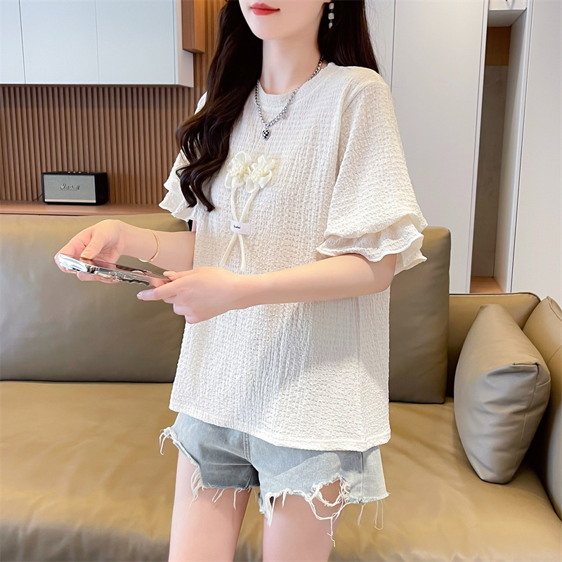 Вафли футболки с короткими рукавами Летний новый свободный дизайн чувство средней школы
