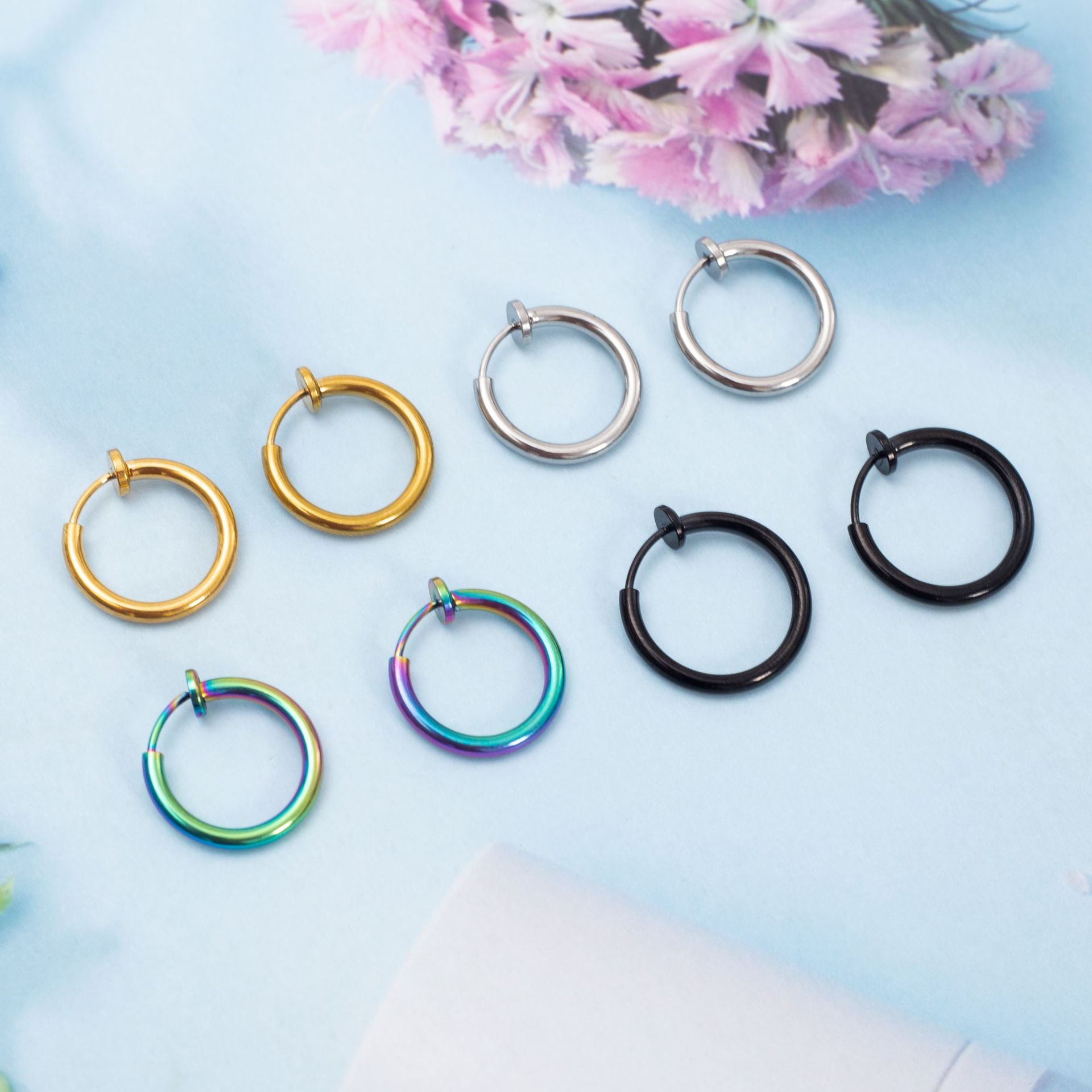 Главная страница > Панк-стиль без отверстий мужские зажимы для ушей из нержавеющей стали Простой ветер титановая сталь Пружинные зажимы для ушей круглые серьги оптом