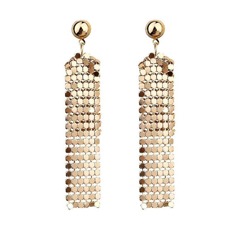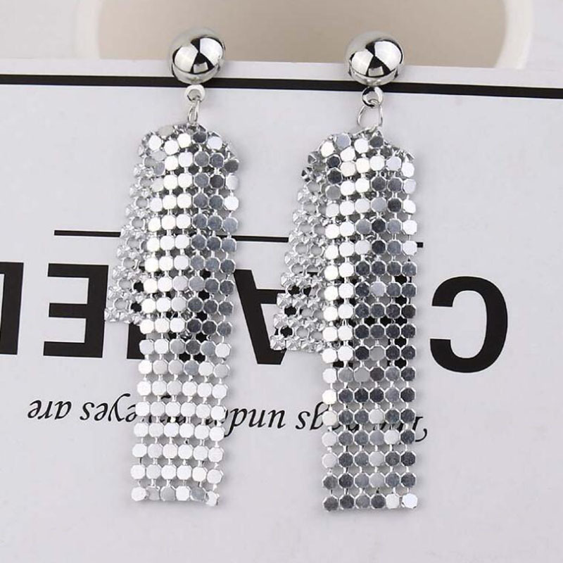 Главная страница > Геометрические металлические блестки длинные серьги с бахромой никой