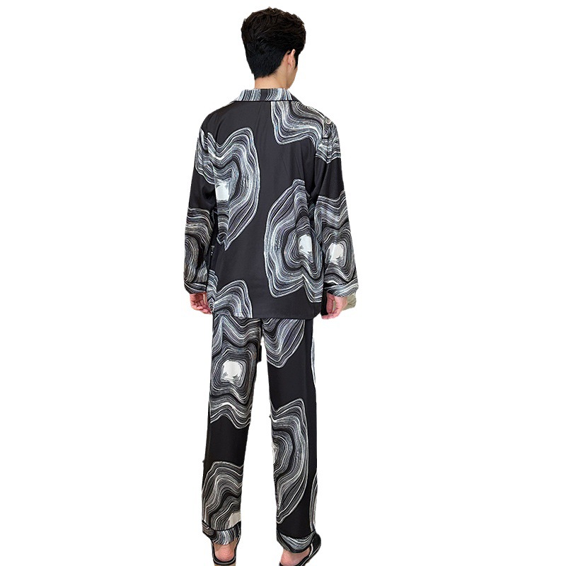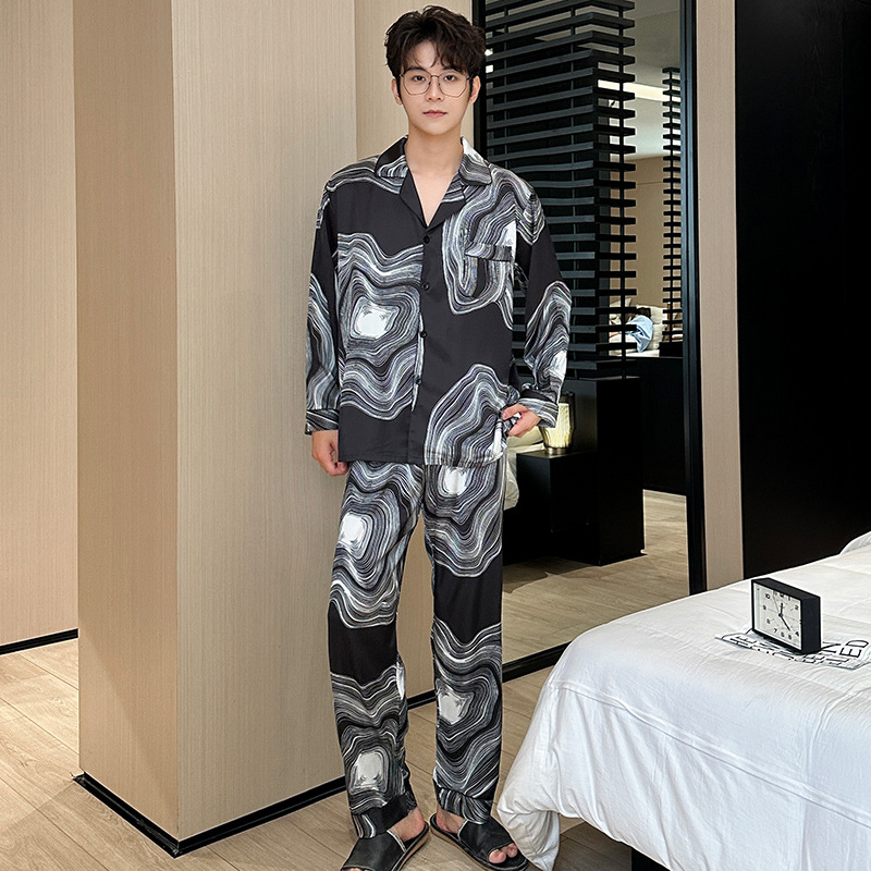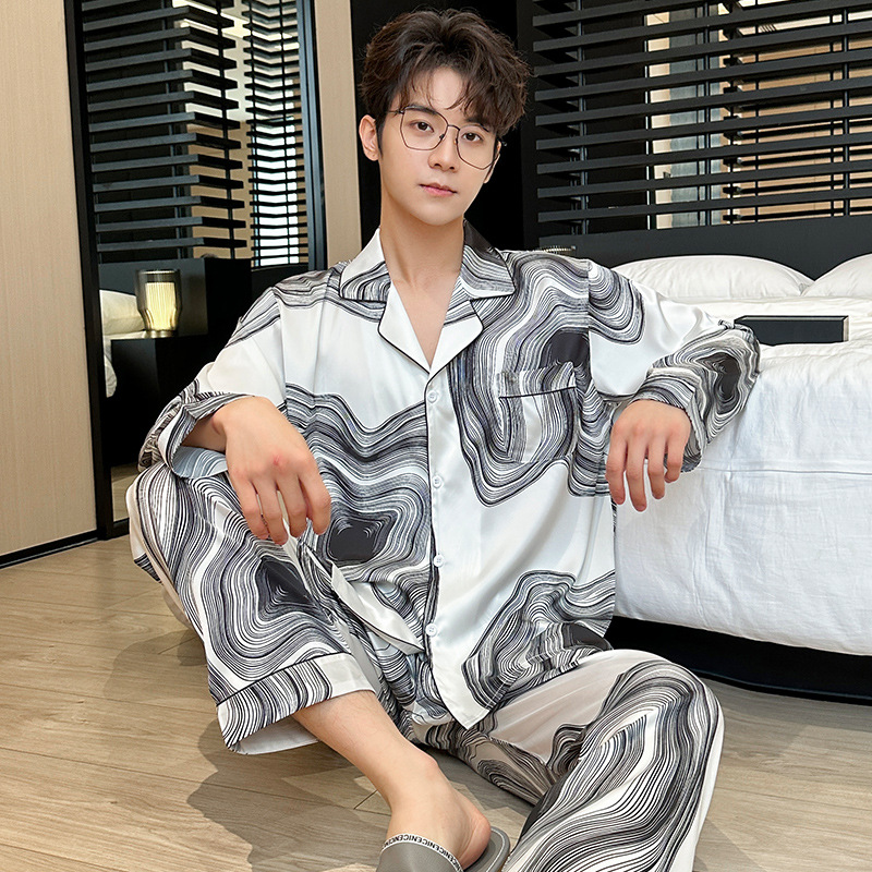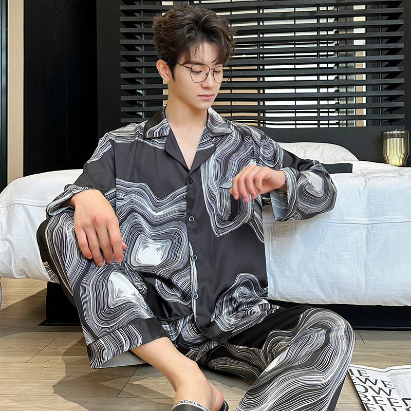 Пижама мужская весна и осень с длинными рукавами из ледяного шелка тонкий продвинутый смысл плюс размер досуг может носить костюм на улице осень N299