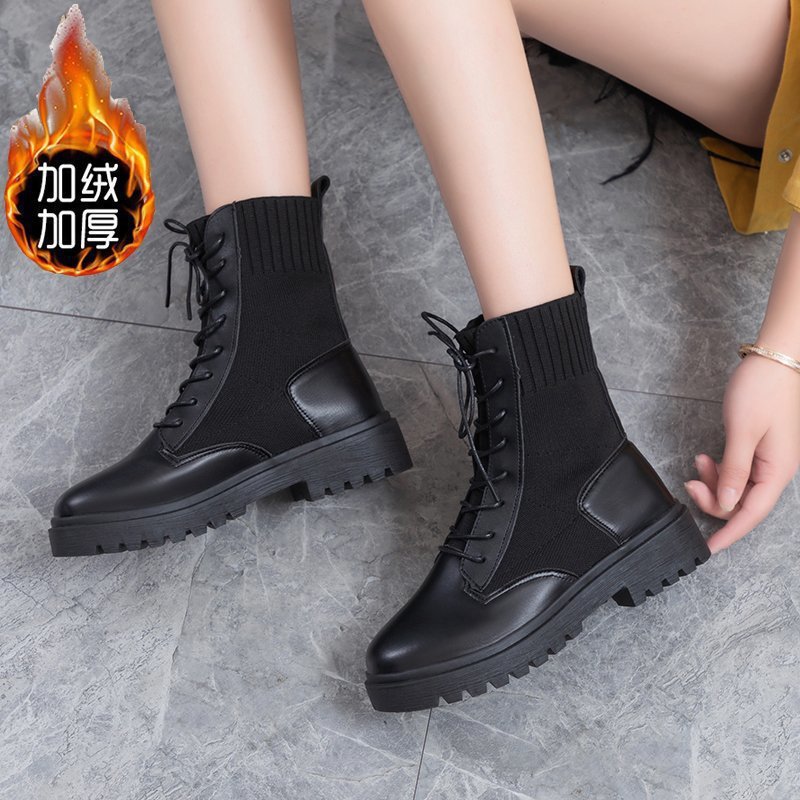Главная страница > 2020 осень-зима Новые трикотажные автомобильные ботинки для сращивания, эластичные Ботинки Martin, Женские Британские короткие сапоги на шнуровке оптом