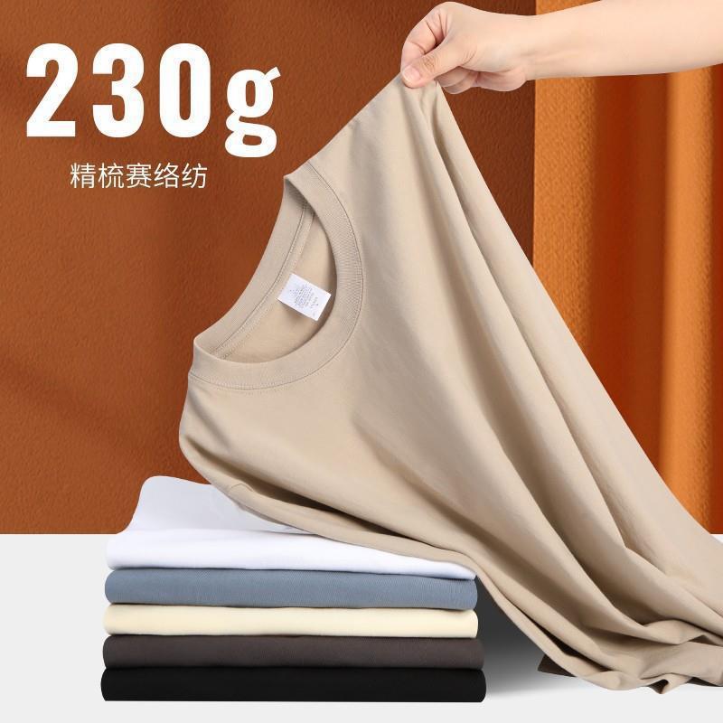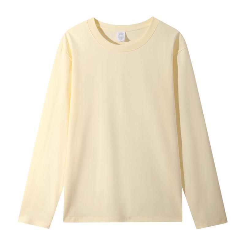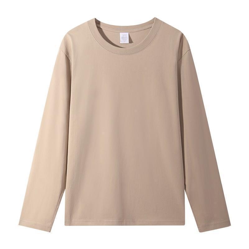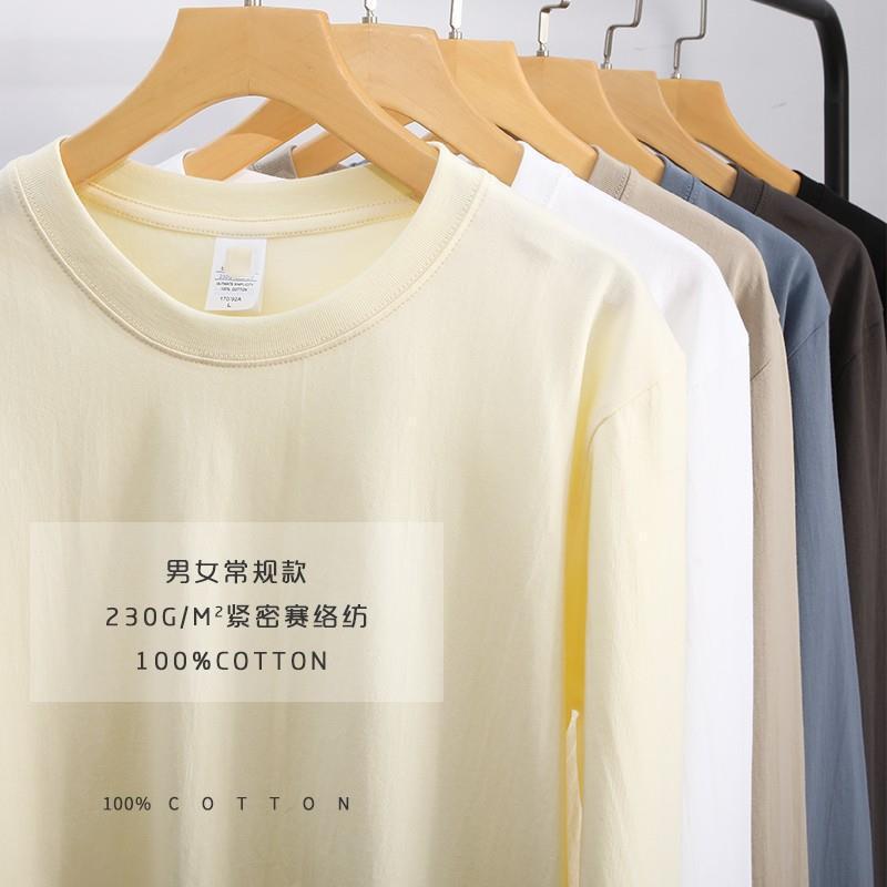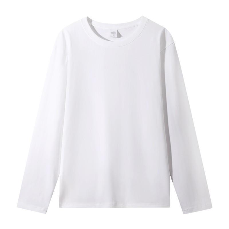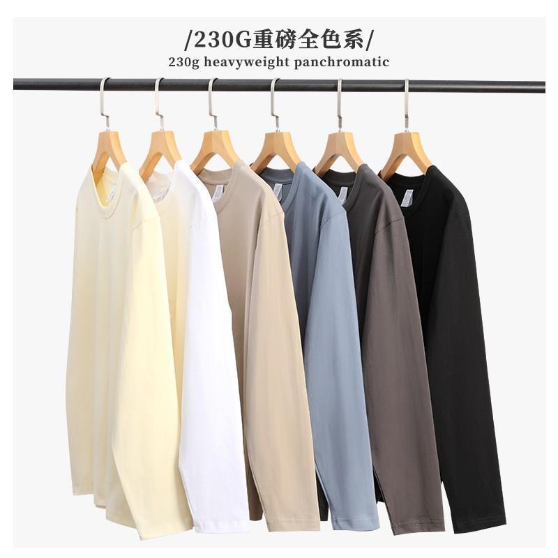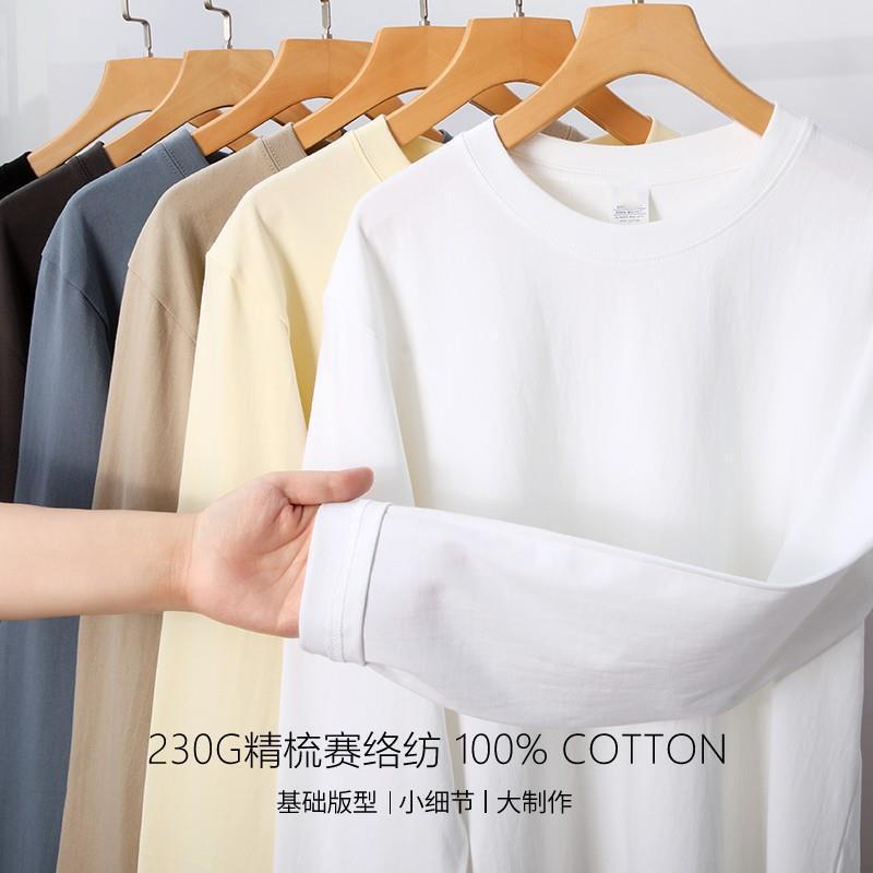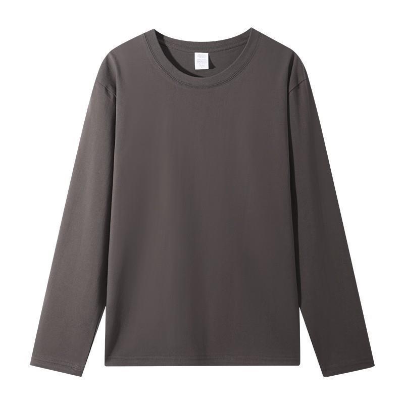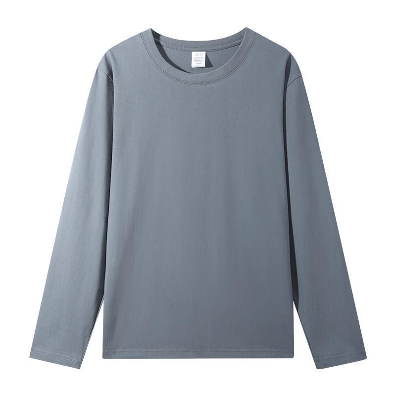 230 г осенняя хлопчатобумажная футболка Синьцзяна с круглым вырезом сплошной цвет мужская футболка с длинными рукавами свободная нижняя рубашка с резьбой